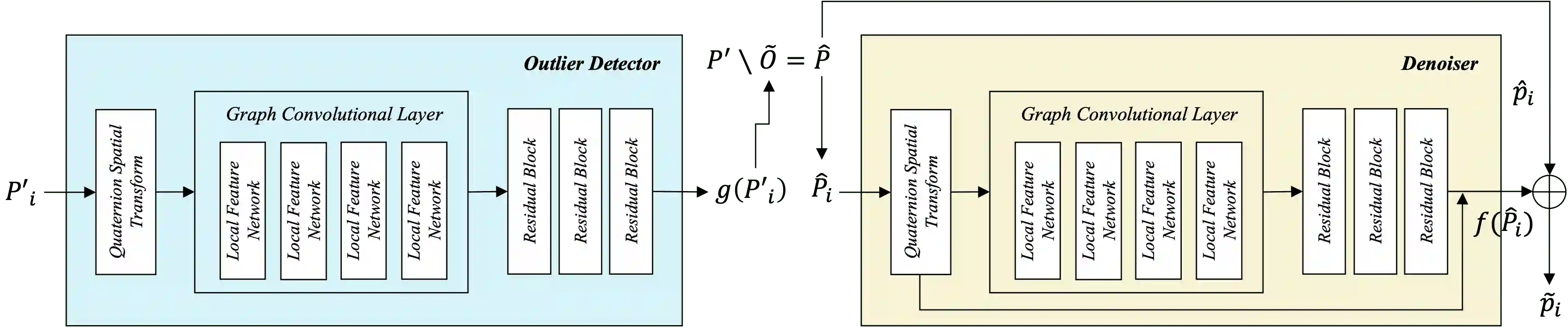 The digitalization of society is rapidly developing toward the realization of the digital twin and metaverse. In particular, point clouds are attracting attention as a media format for 3D space. Point cloud data is contaminated with noise and outliers due to measurement errors. Therefore, denoising and outlier detection are necessary for point cloud processing. Among them, PointCleanNet is an effective method for point cloud denoising and outlier detection. However, it does not consider the local geometric structure of the patch. We solve this problem by applying two types of graph convolutional layer designed based on the Dynamic Graph CNN. Experimental results show that the proposed methods outperform the conventional method in AUPR, which indicates outlier detection accuracy, and Chamfer Distance, which indicates denoising accuracy.