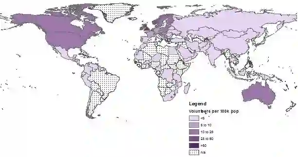 翻译:尽管公民科学对科学进步和公民科学家社区有许多好处,但对于贡献模式和公民科学项目贡献者的人口分布仍没有全面了解,本文通过分析来自198个国家的超过340 000名公民科学志愿者向最大的公民科学平台之一Zoonivers提供5 400万个分类,对公民科学劳动力的时空分布和性别分布进行了初步概述,分析了来自198个国家的超过340 000名公民科学志愿者向最大的公民科学平台之一Zoonivers提供5 400万个分类。首先,我们报告了公民科学的地域分布不均,并模拟了各国间基于社会经济条件和各国研究投资水平的差异。分析贡献的时间特征,我们报告了参与的“暴发性”事件以及公民科学工作者在最活跃的当天提出的参与的休闲性质。最后,我们讨论了公民科学家(约30%为女性)之间的性别不平衡问题,并与其他合作项目以及更正式的科学活动中的性别分布。公民科学项目需要来自学术界以外的利益攸关方进一步关注,并了解公共科学设计过程。