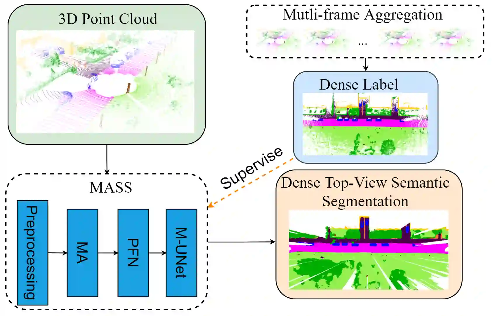 翻译:所有自动化驱动系统的核心是感知周围环境的能力,例如,通过LIDAR序列的语义分解,通过LIDAR序列的语义分解取得了显著的进展,由于发行了大型数据集,如SemanticKITTI和nuScenes-LidarSeg。虽然大多数以前的工作侧重于LIDAR输入的稀疏分解,但密度高的输出面遮罩为自行驾驶的汽车提供了几乎完整的环境信息。在本文中,我们引入了MASS - 一个多机密的逻辑分解模型,专门为对驱动场进行密集的顶级理解。我们的框架在界碑-3的视野和占用特征上运作,并包括三个基于关注的建筑块:(1) 一个关键点驱动的图形注意,(2) 一个基于LSTM的注意,从嵌入空间输入的矢量的矢量上计算出一个密集的驱动力,导致一个稠密的360度分解面具。在Smantic-KITTI和nuScenes-LidarSeg中进行广泛的实验,我们在模型上展示其有效性,在高端点3-LIV上展示了艺术的状态,在30-SDI的Sxxxxxxxxxxxxxxxxxxxxxx