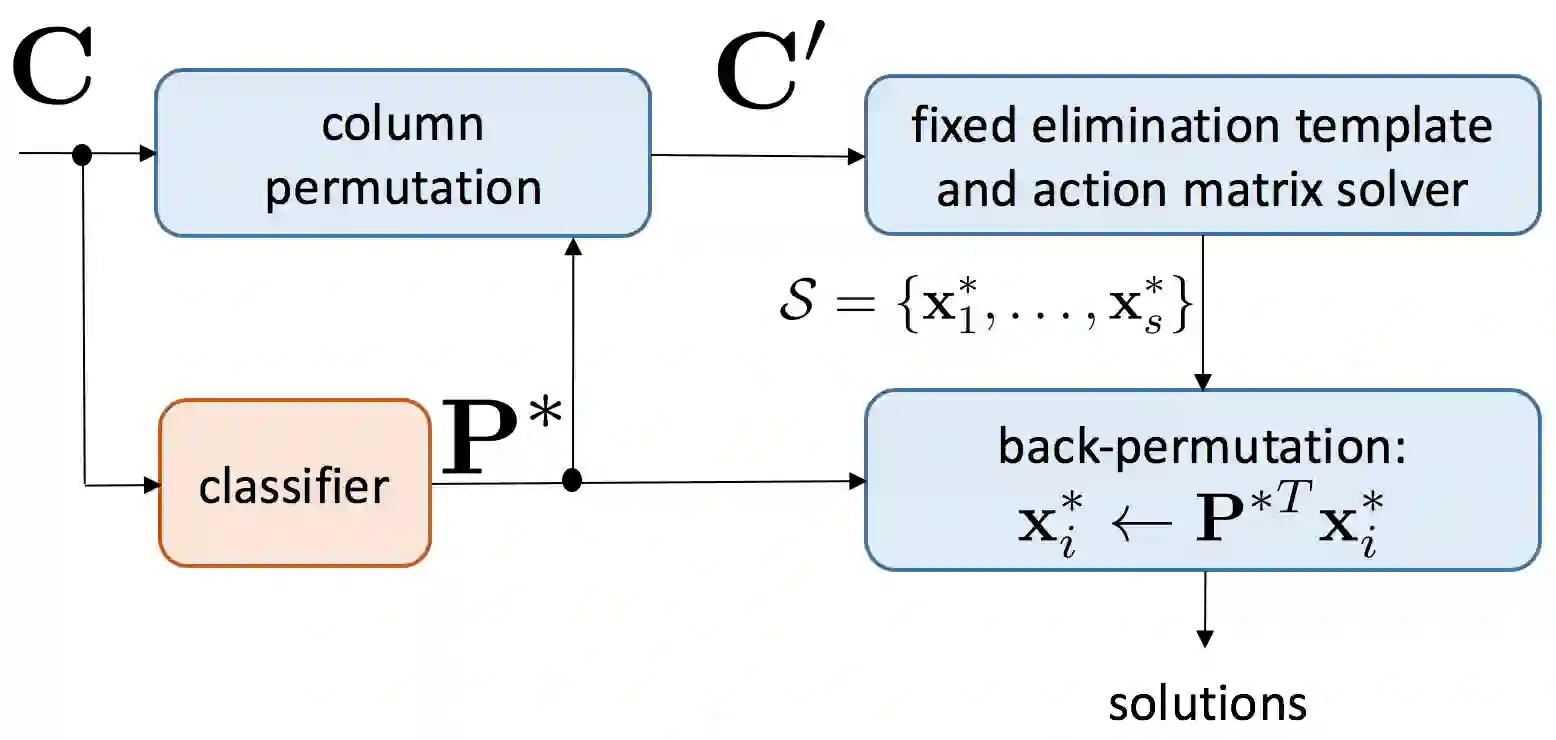 Over the past decade, the Gr\"obner basis theory and automatic solver generation have lead to a large number of solutions to geometric vision problems. In practically all cases, the derived solvers apply a fixed elimination template to calculate the Gr\"obner basis and thereby identify the zero-dimensional variety of the original polynomial constraints. However, it is clear that different variable or monomial orderings lead to different elimination templates, and we show that they may present a large variability in accuracy for a certain instance of a problem. The present paper has two contributions. We first show that for a common class of problems in geometric vision, variable reordering simply translates into a permutation of the columns of the initial coefficient matrix, and that -- as a result -- one and the same elimination template can be reused in different ways, each one leading to potentially different accuracy. We then prove that the original set of coefficients may contain sufficient information to train a classifier for online selection of a good solver, most notably at the cost of only a small computational overhead. We demonstrate wide applicability at the hand of generic dense polynomial problem solvers, as well as a concrete solver from geometric vision.