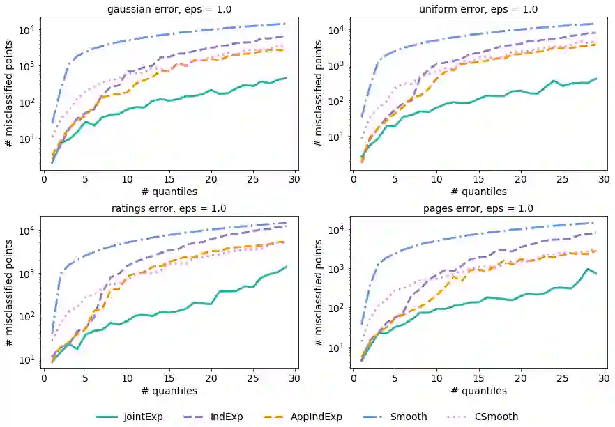 翻译:量化法通常用于总结和理解数据。 如果数据是敏感的, 则可能有必要以不同私人的方式计算量化, 提供理论保证结果不会披露私人信息。 但是, 在需要多个量化法的常见情况下, 现有的差异私人算法规模不高: 它们单独计算每个量化, 分割隐私预算, 从而降低准确性。 在这项工作中, 我们提议了一个指数机制的例子, 该指数机制同时从美元数据点中估算美元量化值, 同时保证差异的隐私。 实用功能结构谨慎, 以便高效实施, 避免指数依赖美元, 并在时间上将所有美元量化法的估计数回报到$O( m ⁇ 2 + m ⁇ 2 ) 。 实验显示, 我们的方法大大超过真实和合成数据的当前水平, 同时保持足够有效, 以实用的方式运行 。