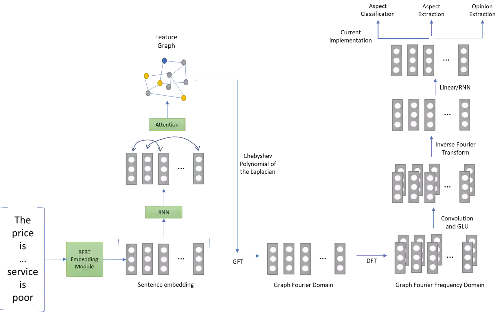 翻译:Asprospect Basic Sentition 分析的目标是捕捉与不同方面有关的审查者情绪。然而,审查判决的复杂性、双重否定的存在以及不同领域对词汇的具体使用使得很难准确预测情绪和整体上具有挑战性的自然语言理解任务。虽然经常的神经网络、关注机制以及最近,基于图形的注意模式很普遍,但本文中我们提议图示 Fourier 变换基于网络,具有光谱域所创建的特征。虽然这种方法在预报领域取得了相当大的成功,但对于任何自然语言处理任务而言,都没有早一些加以探讨。该方法依赖于从原始数据中创建和学习一个基本图表,从而利用相邻矩阵转换到图示 Fourier域。随后,Fourier变换用于转换到创建新特征的频率(光谱)域。这些变换已证明非常有效,因为我们发现我们的模型在SemEval-2014数据集(即“Laptop”和“Restaurant”)领域都取得了最佳结果。我们提议的模型还在最近提出的另外两个数据域中找到了竞争性域。