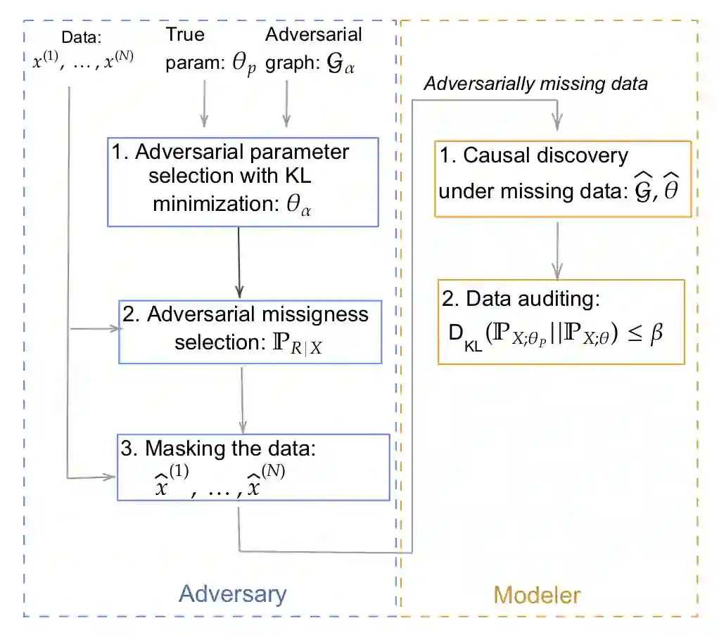 Inference of causal structures from observational data is a key component of causal machine learning; in practice, this data may be incompletely observed. Prior work has demonstrated that adversarial perturbations of completely observed training data may be used to force the learning of inaccurate causal structural models (SCMs). However, when the data can be audited for correctness (e.g., it is crytographically signed by its source), this adversarial mechanism is invalidated. This work introduces a novel attack methodology wherein the adversary deceptively omits a portion of the true training data to bias the learned causal structures in a desired manner. Theoretically sound attack mechanisms are derived for the case of arbitrary SCMs, and a sample-efficient learning-based heuristic is given for Gaussian SCMs. Experimental validation of these approaches on real and synthetic data sets demonstrates the effectiveness of adversarial missingness attacks at deceiving popular causal structure learning algorithms.