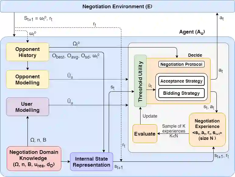 翻译:我们提出了一个新的双边谈判模式,让自我感兴趣的代理商在用户偏好不确定的情况下学习如何就多种问题进行谈判。该模式依赖于代表该代理商在谈判期间应当使用的战术的可解释战略模板,并学习模板参数,以最大限度地扩大在多次谈判中获得的平均效用,从而产生最佳的投标接受率和生成率。我们的模式还利用深入强化学习来评价门槛效用价值,以评价那些需要这些价值的战术,从而为每个环境州带来最佳的公用事业。为了处理用户偏好不确定性,该模式依赖于随机搜索,以找到最符合特定部分优惠特征的用户模式。在谈判期间,采用了多目标优化和多标准决策方法,从而产生最佳结果,从而增加成功(双赢)谈判的数量。严格的实验评估表明,使用我们的模型的代理商在个人和社会福利公用事业方面都超过了第10次自动谈判代理商竞争(ANAC'19)的获奖者。