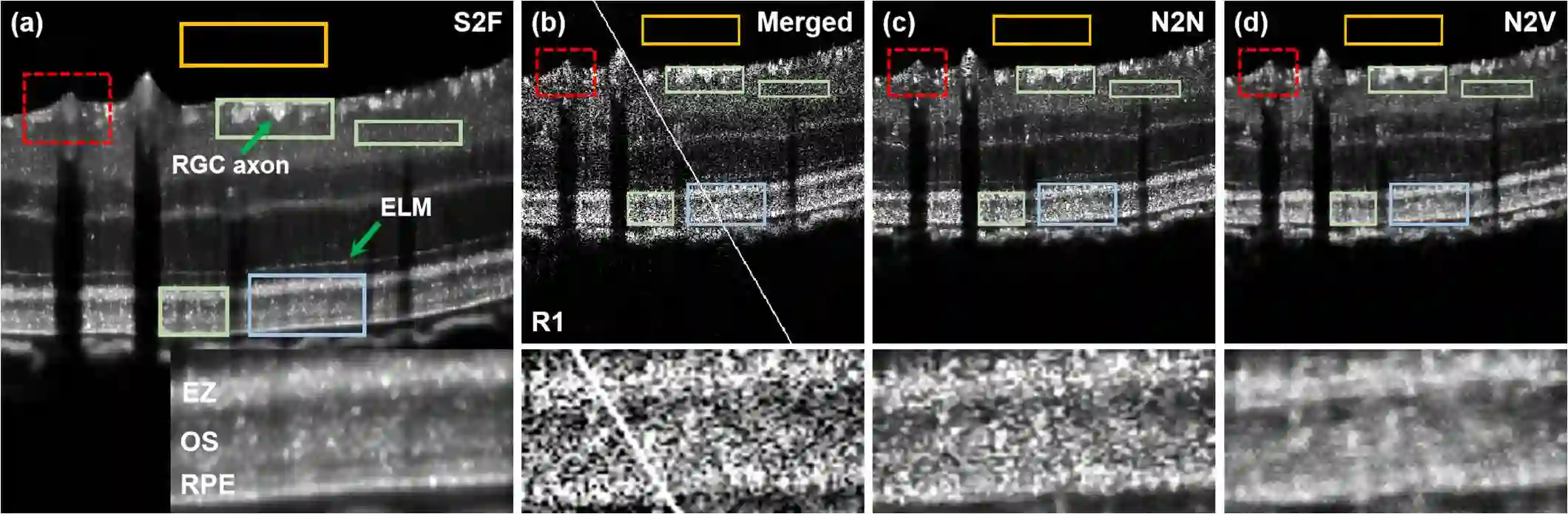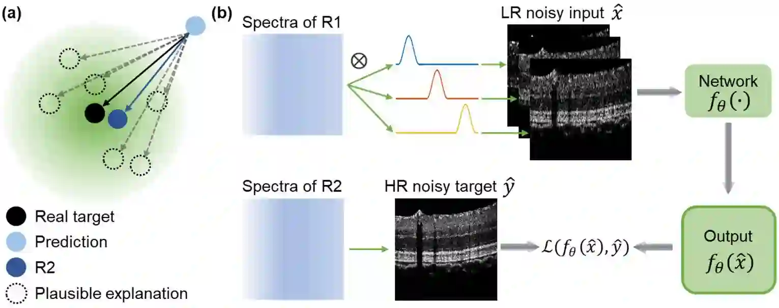 Optical coherence tomography (OCT) suffers from speckle noise, causing the deterioration of image quality, especially in high-resolution modalities like visible light OCT (vis-OCT). The potential of conventional supervised deep learning denoising methods is limited by the difficulty of obtaining clean data. Here, we proposed an innovative self-supervised strategy called Sub2Full (S2F) for OCT despeckling without clean data. This approach works by acquiring two repeated B-scans, splitting the spectrum of the first repeat as a low-resolution input, and utilizing the full spectrum of the second repeat as the high-resolution target. The proposed method was validated on vis-OCT retinal images visualizing sublaminar structures in outer retina and demonstrated superior performance over conventional Noise2Noise and Noise2Void schemes. The code is available at https://github.com/PittOCT/Sub2Full-OCT-Denoising.