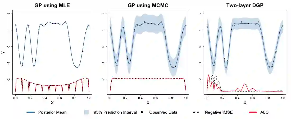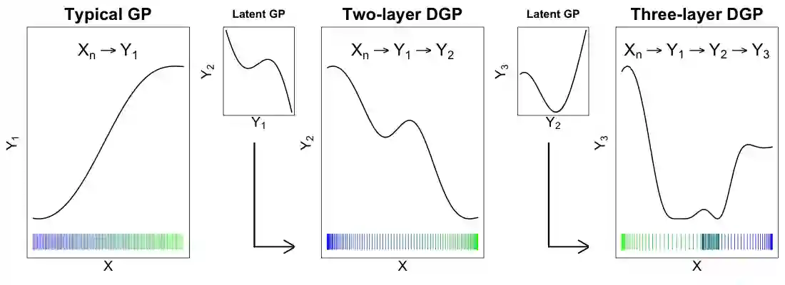 翻译:深高斯进程(DGPs)越来越受欢迎,作为机器学习(ML)中的预测模型,因为它们具有非固定的灵活性和应对培训数据突变的系统变化的能力。在这里,我们探索DGP作为计算机模拟实验的代孕器,这些计算机模拟实验的反应表面具有相似的特性。特别是,我们通过一种新颖的椭圆切切片取样(ESS)巴耶西亚远地点的推断性计划,将DGP自动扭曲输入空间和全部不确定性量化(UQ)传送到积极学习(AL)战略,在输入空间中不统一地分布输入空间 -- -- 一种普通(静止)GP不能做到。按此方式建立设计可以让更小的一组培训,限制对模拟器代码的昂贵评估和降低DGP推断的立方成本。当培训数据大小通过仔细的获取而保持小一些时,加上潜层的偏差布局,这个框架既有效,又可进行计算。我们的方法在模拟数据和两种不同输入维度的实际计算机实验中作了说明。我们提供了一种开源软件。