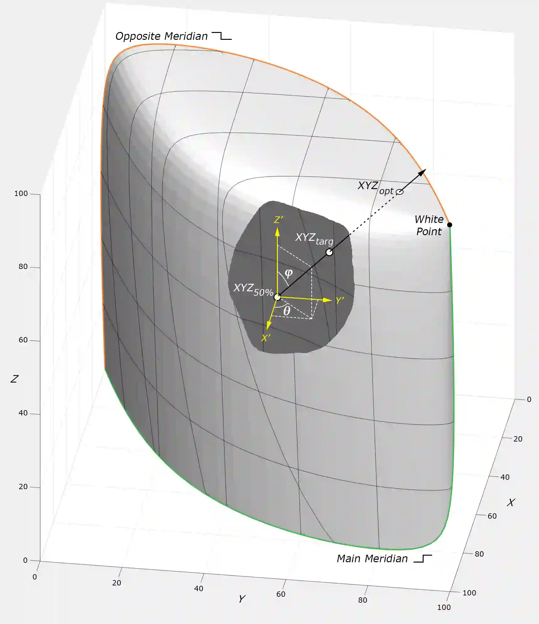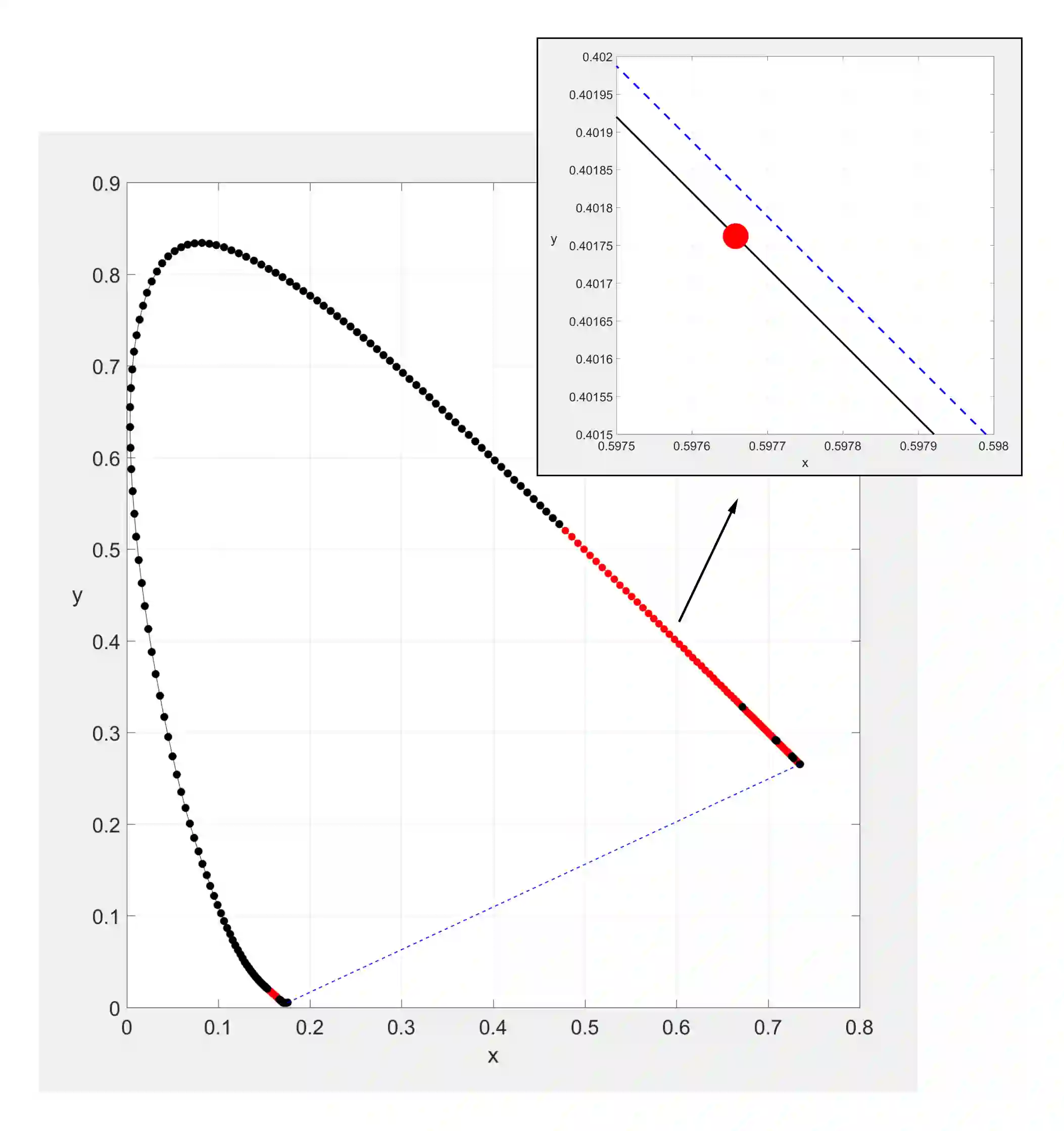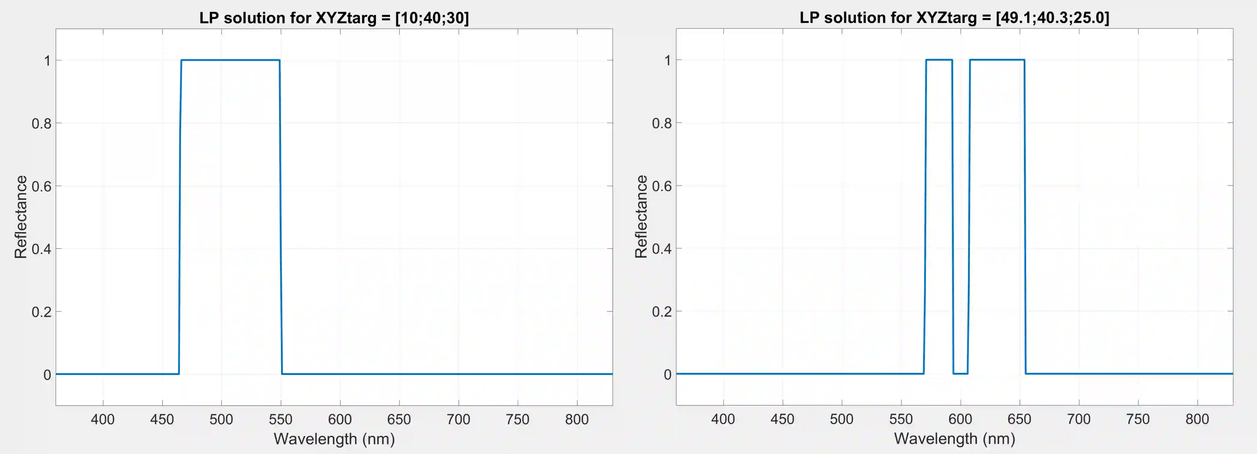 翻译:与 CIE 1931 颜色匹配函数相关的色度图显示为略微非混凝土。 虽然对实际色度计算没有影响, 但非混凝土确实对与物体表面表面的物体色实相关的某种最佳对象色反射分布的形状有重大影响。 许多最佳颜色表象不是通常的双向转换形状, 而是显示较高的过渡值。 正在开发线性编程配方, 用于定位这些高过渡最佳对象颜色位于物体颜色固体表面的位置。 高过渡区域计似乎有一个点对称互补结构。 最终的同行审查版本( 将出现) 包含更多关于颜色匹配功能的凝固化的材料, 以及对从锥形基质变化的现代“ 生理相关” 集聚变的附加分析 。