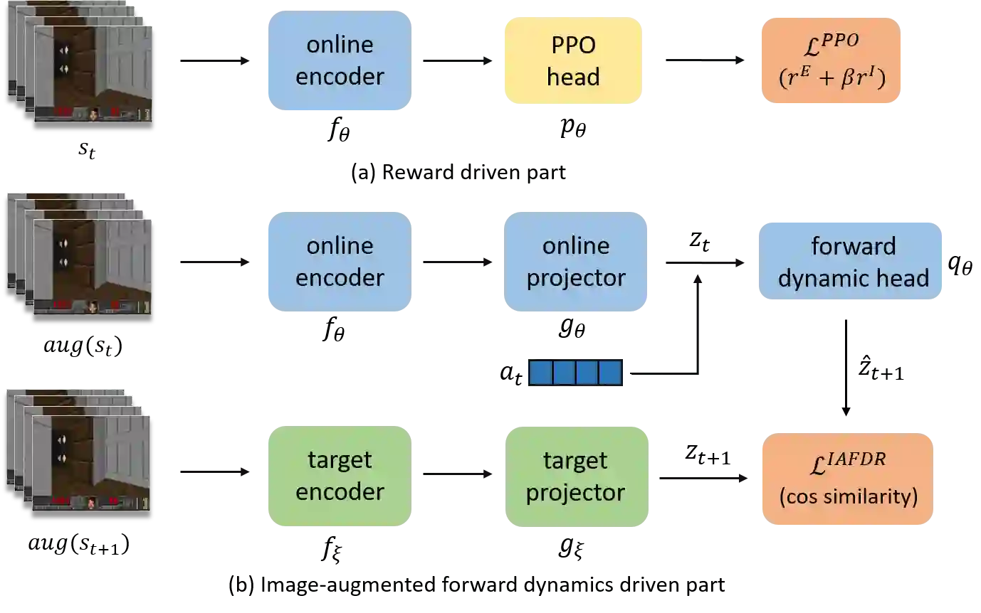 翻译:现实生活中的许多场景可以被抽象到稀少的奖励视觉场景, 在那里, 代理人很难在只接受图像和微弱的奖励的条件下完成这项任务。 我们提议将这个问题分解成两个子问题: 视觉表现和微弱的奖励。 为了解决这些问题, 将自我监督的代表性学习与内在动机相结合的新框架 IAMMIIR 提出来。 对于视觉表现, 一种由图像放大前向动态和奖励相结合驱动的表示。 对于微弱奖励, 设计一种新的内在奖赏类型, 即运动记忆内存内分泌( MMMIR) 。 它利用当前模型( 在线网络) 和历史模型( 目标网络) 的产出差异来展示该代理人对状态的熟悉程度。 我们的方法是在Vizdoomoom 中以微薄的奖励来评价视觉导航任务。 实验表明, 我们的方法在样本效率方面达到了艺术表现的状态, 要比现有方法至少快2倍于100%的成功率。