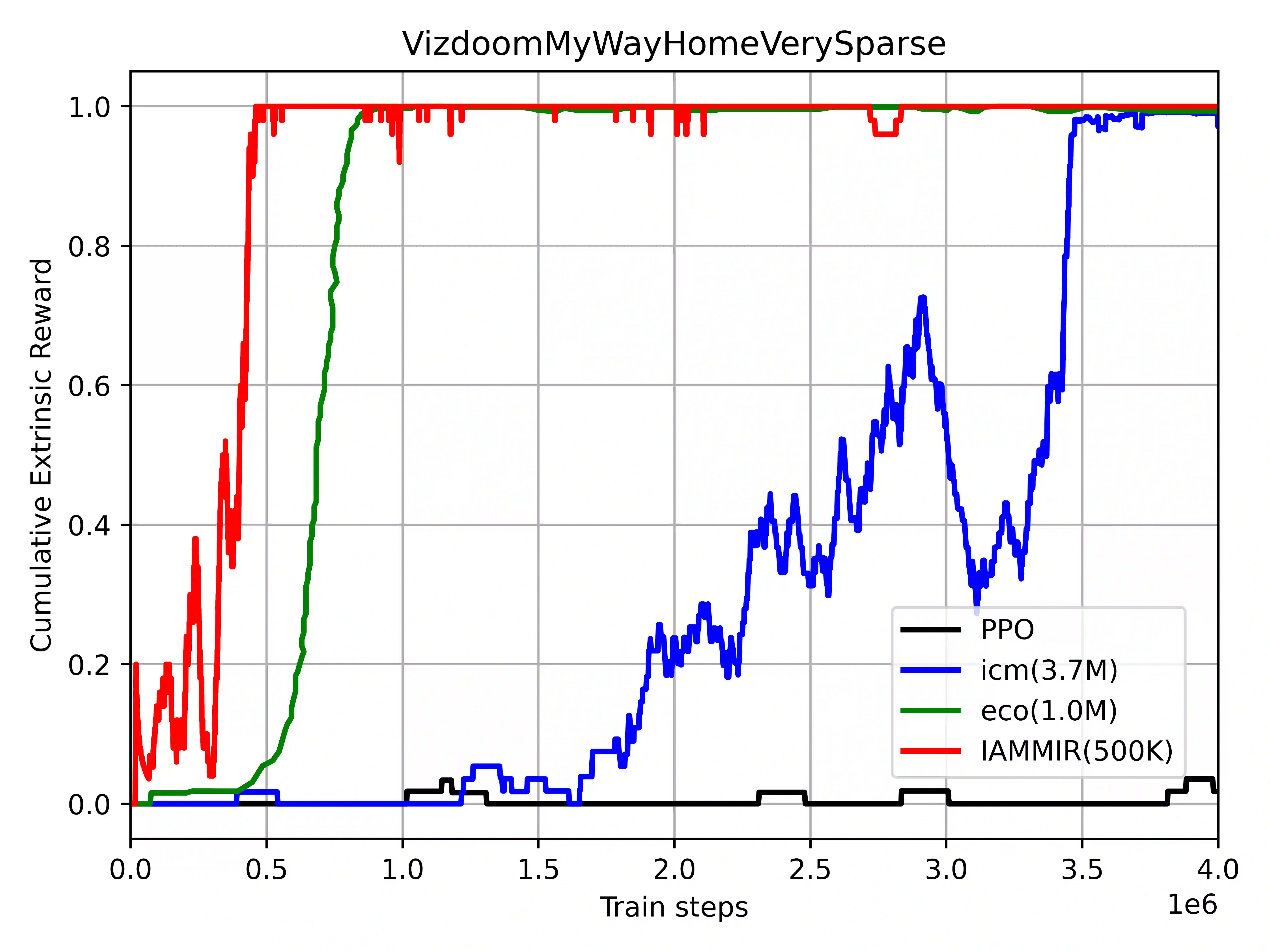 Many scenes in real life can be abstracted to the sparse reward visual scenes, where it is difficult for an agent to tackle the task under the condition of only accepting images and sparse rewards. We propose to decompose this problem into two sub-problems: the visual representation and the sparse reward. To address them, a novel framework IAMMIR combining the self-supervised representation learning with the intrinsic motivation is presented. For visual representation, a representation driven by a combination of the imageaugmented forward dynamics and the reward is acquired. For sparse rewards, a new type of intrinsic reward is designed, the Momentum Memory Intrinsic Reward (MMIR). It utilizes the difference of the outputs from the current model (online network) and the historical model (target network) to present the agent's state familiarity. Our method is evaluated on the visual navigation task with sparse rewards in Vizdoom. Experiments demonstrate that our method achieves the state of the art performance in sample efficiency, at least 2 times faster than the existing methods reaching 100% success rate.