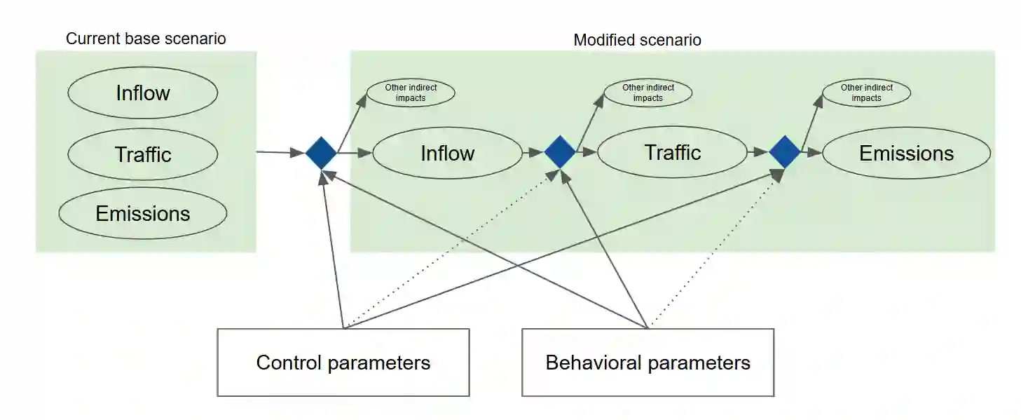 翻译:城市交通管制政策日益被用于解决城市拥堵、排放和可达性问题,但由于城市交通系统的社会技术复杂性,其影响难以评估。数据可用性和计算能力的最新进展为交通政策设计提供了新型的模型驱动、基于仿真的决策支持。本文提出了一种新颖的仿真范式,用于事前评估直接影响(如交通状况、出行方式转移、排放)以及涵盖交通相关效应、社会公平性和经济可达性的间接影响。该方法集成了一个多层城市交通模型,将网络、流量和排放的物理层与捕捉行为响应和政策变化适应的社会层相结合。利用真实世界数据实例化当前“现状”场景,同时将政策替代方案和行为假设编码为模型参数以生成多个“假设”场景。该框架通过分析政策干预引起的模拟结果变化,支持跨场景的系统性比较。通过一个旨在评估广泛城市交通限制方案引入影响的案例研究,阐释了所提出的方法。结果表明该框架能够探索替代性法规设计和用户响应,为城市交通政策提供知情和前瞻性的评估支持。