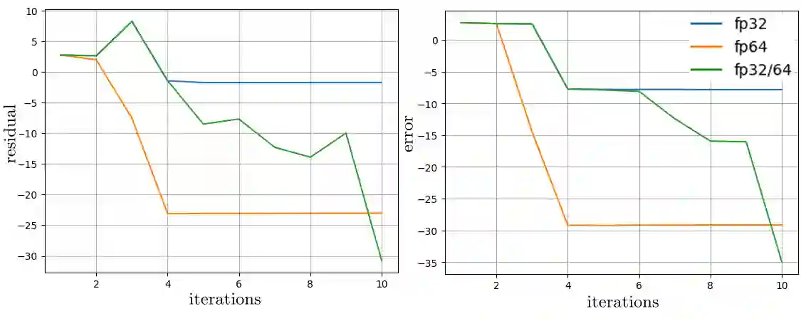 翻译:本文研究了应用于稀疏线性系统的共轭梯度(CG)方法的最优精度切换问题。稀疏矩阵定义为具有 $m\!=\!O(n)$ 个非零元素的 $n\!\times\!n$ 矩阵。该算法首先以容差 $\varepsilon_1$ 在单精度下计算近似解,然后切换至双精度以将解细化至所需的停止容差 $\varepsilon_2$。基于对系统矩阵参数的估计(其计算时间不超过在双精度下求解系统所需时间的 $1\%$),我们确定了能最小化总计算时间的 $\varepsilon_1$ 最优值。该值通过对矩阵在一个小型预计算样本上使用 $k$ 近邻方法进行分类而获得。分类依赖于一个包含以下分量的特征向量:矩阵规模 $n$、非零元数量 $m$、矩阵稀疏性图的伪直径,以及在单精度下早期 CG 迭代过程中残差范数衰减的平均速率。我们证明,除了矩阵条件数外,稀疏性图的直径也会影响迭代计算过程中舍入误差的增长。在顺序计算环境下,对所考虑的矩阵类型,所提算法将 CG 的计算复杂度(以等效的双精度迭代次数表示)平均降低了 $17\%$ 以上。由此获得的加速效果最多比使用最优(先知)$\varepsilon_1$ 选择所实现的加速效果低 $1.5\%$。虽然矩阵结构对 Krylov 子空间方法收敛性的影响已得到充分理解,但利用稀疏性图直径作为混合精度 CG 中舍入误差增长的预测特征似乎是新颖的。据我们所知,尚无先前工作利用图直径来指导迭代线性求解器中的精度切换。
