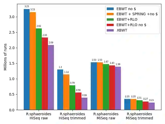 翻译:在本文中,我们展示了如何使用一个或一个以上组装或部分组装的基因组作为其重新组合的压缩全文索引的基础。 具体地说, 我们用组装的基因组作为树干, 将与其对齐的读数放在对齐的起始位置上, 并把它粘贴在树上。 其次, 我们计算由此而成的标签树的 Extendive Burrows- Wheeler 变形 (XBWT), 并据此建立压缩全文索引。 虽然该指数有时可以返回假正数, 但通常比替代物要紧得多。 按照已确立的重复的数据集惯例, 我们比较不同的全文索引, 查看在变形线中运行的数量。 对于人类 Chr19 进行的初步实验显示, 从 EBWT 中去除分隔符数减少19 ⁇, 从2.2亿 减少到1.78亿, 并使用 XBWT再减少15亿, 到1.5亿 。