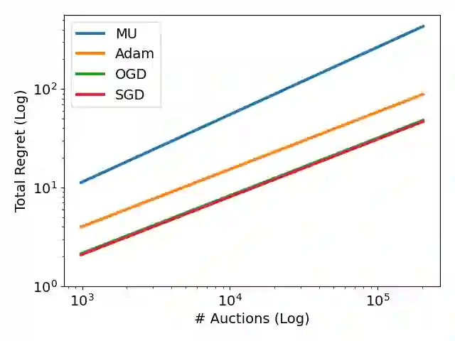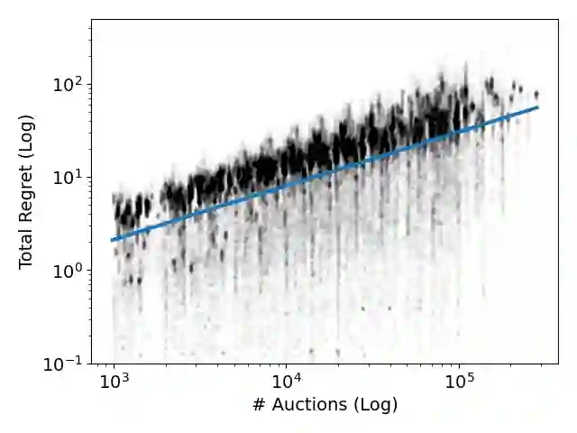 翻译:本研究探讨了在预算约束下的重复拍卖场景中,动态调控算法的总体福利与个体遗憾保证。此类算法通常作为互联网广告平台中的竞价代理,通过可调线性乘数自适应地学习调整出价(即"出价抑制"),以实现指定预算的匹配。我们证明,当多个智能体同时采用基于梯度的自然调控策略时,学习动态过程中获得的流动福利至少能达到任何分配规则所能获得的最优预期流动福利的一半。关键在于,该结论在无需动态系统收敛的条件下依然成立,这使得我们能够规避寻找均衡点时已知的计算复杂性障碍。此结果对智能体估值间的相关性结构具有鲁棒性,且适用于任何核心拍卖——这是一类广泛的拍卖形式,包含第一价格、第二价格和广义第二价格拍卖作为特例。在个体保证方面,我们进一步证明此类调控算法在满足单调性价比特性的任何拍卖中,针对预算调控出价序列均能获得个体效用最大化与价值最大化的动态遗憾界。为补充理论发现,我们基于必应广告平台的拍卖数据进行了半合成数值模拟。