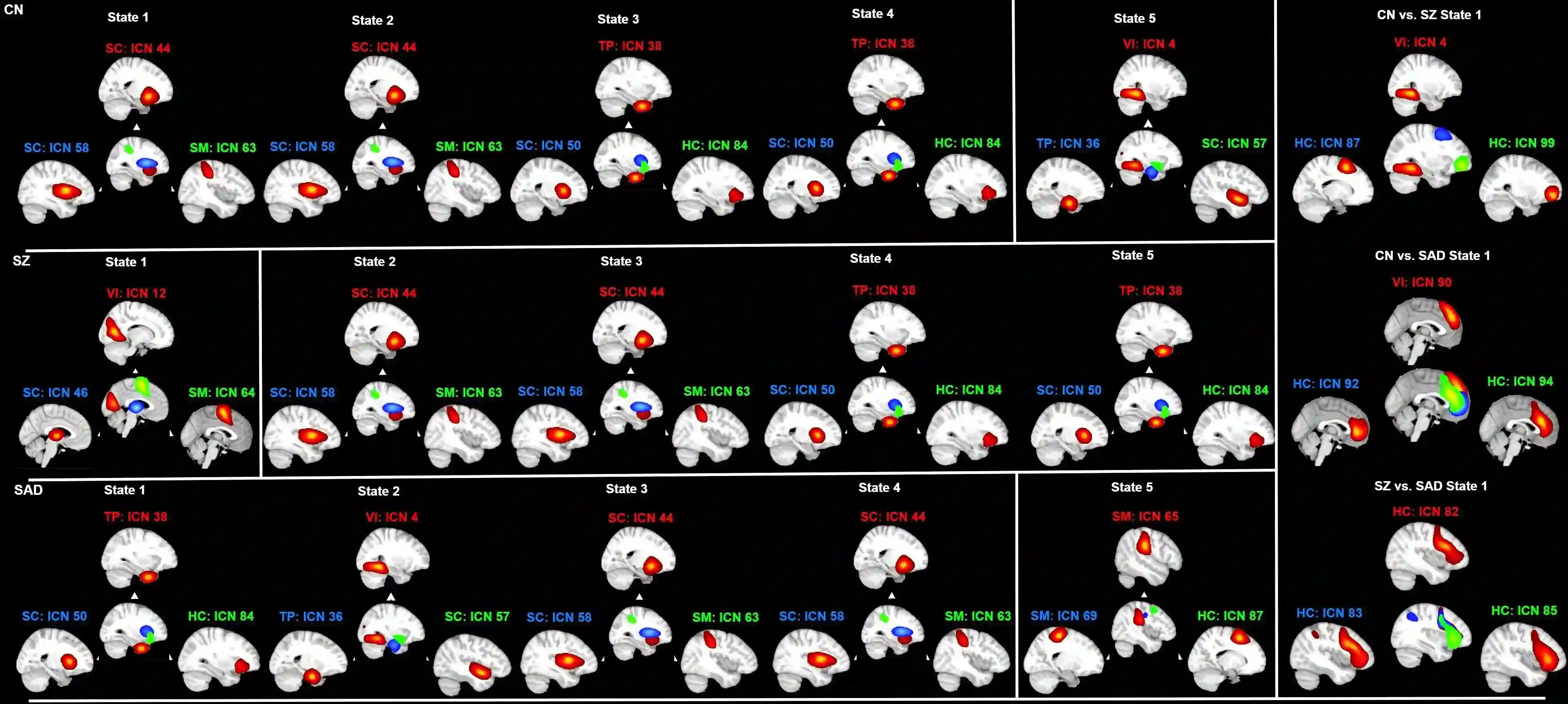 翻译:人脑动态整合并配置信息以适应环境。为捕捉这些随时间的变化,动态二阶功能连接通常被用来捕获瞬态脑活动模式。然而,动态二阶功能连接通常忽略了超越成对关系的相互作用。为应对这一局限,我们利用动态三重相互作用来研究大脑中的多尺度网络交互。在本研究中,我们评估了一个包含精神病性障碍个体的静息态fMRI数据集。我们首先使用静息态fMRI估计了动态三重相互作用。经过聚类分析后,我们估计了对照组、精神分裂症和分裂情感性障碍的群体特异性状态及群体共有状态。从群体特异性状态中,我们观察到显著的三重相互作用,特别是在精神分裂症患者的视觉、皮层下和躯体运动网络之间,以及颞叶与高级认知网络之间。在分裂情感性障碍中,关键相互作用涉及初始状态的颞叶网络和后续状态的躯体运动网络。从群体共有状态中,我们观察到与对照组相比,高级认知网络主要在精神分裂症和分裂情感性障碍中参与交互。此外,精神分裂症与分裂情感性障碍之间最显著的差异也存在于高级认知网络中。总之,我们首次运用动态三重相互作用方法研究精神病性障碍。我们的发现凸显了动态高阶功能连接的巨大潜力,为研究健康与疾病状态下的人脑开辟了新途径。