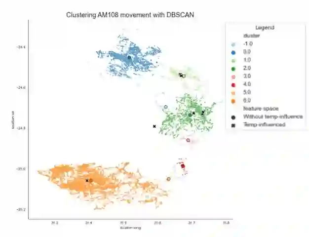 翻译:了解动物的迁移对养护工作至关重要。过去的研究往往侧重于影响动物返回或栖息地的移动的因素,而不是影响动物返回或栖息地的感兴趣地点。我们探索使用集群,以确定撒哈拉以南非洲地区非洲大象感兴趣的地点。我们的分析使用公开可得的数据集进行,以跟踪南非克鲁格国家公园(KNP)、纳米比亚Etosha国家公园以及布基纳法索和刚果地区非洲大象;利用DBSCAN和KMEans群集算法,我们计算大象移动数据并突出重要地点。我们通过将地貌空间与不温度进行比较,我们表明温度是解释流动情况的一个重要特征。认识到温度的重要性,我们开发了一种技术,将非洲大象的外部温度数据添加到没有温度数据的其他地理空间数据集。在用微小的时标解决使用外部数据的障碍之后,我们考虑了这些数据的质量,以及根据这一外部温度数据计算出的群集的质量。我们通过对地貌空间空间空间空间空间的温度变化进行比较后,我们算出了这些主要地点的数值,我们算出了在卫星图像地点的比值,这些地方的比重。我们算出了这些大象值,这些地点的比值,这些比值比值的比值比值比值比值比值比值比值比值比值比值的比值比值比值比值比值比值比值比值比值比值比值在人类的比值在人类的比值在人类的比值在人类的比值在人类的比值地点的比值点,用来了比值是比值在人类的比值是比值在人类的比值在人类的海基基基基基基基基基基值地点的比值地点的比值在比值,这些比值在比值在比值地点的比值在比值地点的比值地点的比值地点的比值地点的比值在人类的比值地点的比值在比值在比值在比值在人类的比值地点的比值在人类的比值的比值在比值在比值的比值在比值在比值在比值在比值的比值在比值在比值在比值在比值在比值在比值在比值在比值的比值在比值在比值在比值在比值的比值在
