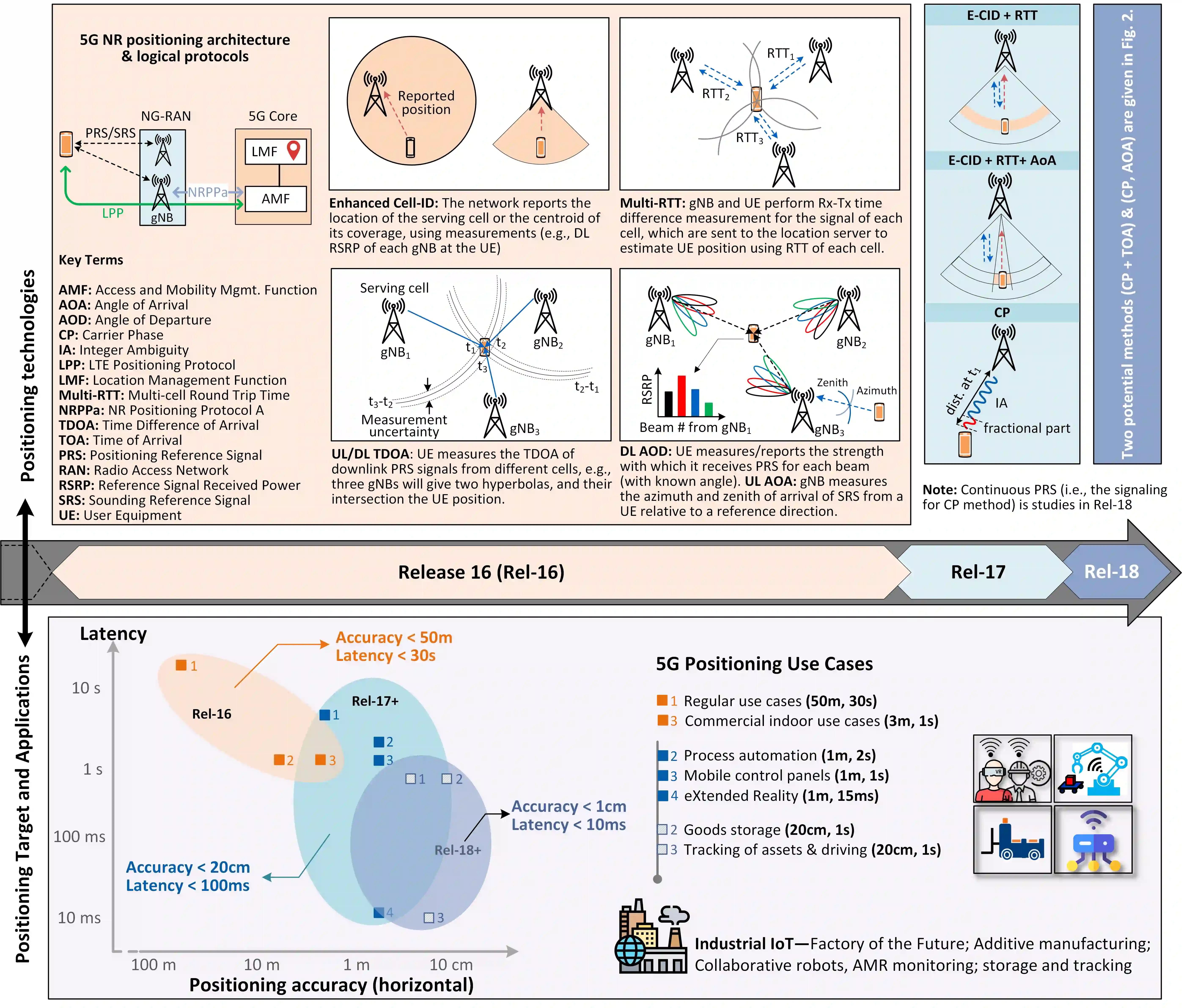 翻译:在建立牢固的连通性之后,精确定位正在演变成5G服务提供的创新组成部分,即工业用箱和纵向服务提供,具有具有挑战性的室内无线电环境。在这方面,3GPP Rel-16标准是明确关键创新的转折点,随后是雷尔-17+的强化。在本条中,我们走这条道路,详细阐述5G定位框架、测量和方法,然后将重点转移到承运阶段测量,作为时间和角定位方法的补充措施,以实现厘米水平的准确性。由于这条道路并非没有挑战,我们讨论这些并概述潜在解决方案。作为解决方案的一个例子,我们研究如何在室内工厂(InF)情景中采用现实的模拟,以阶段持续参考信号对抗噪音阶段测量。