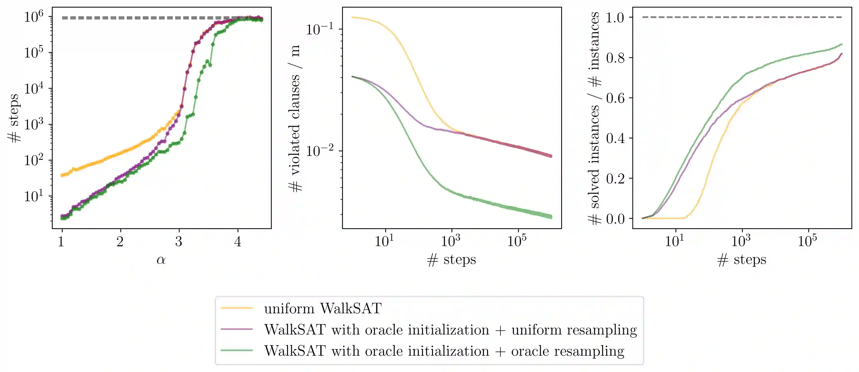 The Boolean Satisfiability problem (SAT) is the most prototypical NP-complete problem and of great practical relevance. One important class of solvers for this problem are stochastic local search (SLS) algorithms that iteratively and randomly update a candidate assignment. Recent breakthrough results in theoretical computer science have established sufficient conditions under which SLS solvers are guaranteed to efficiently solve a SAT instance, provided they have access to suitable "oracles" that provide samples from an instance-specific distribution, exploiting an instance's local structure. Motivated by these results and the well established ability of neural networks to learn common structure in large datasets, in this work, we train oracles using Graph Neural Networks and evaluate them on two SLS solvers on random SAT instances of varying difficulty. We find that access to GNN-based oracles significantly boosts the performance of both solvers, allowing them, on average, to solve 17% more difficult instances (as measured by the ratio between clauses and variables), and to do so in 35% fewer steps, with improvements in the median number of steps of up to a factor of 8. As such, this work bridges formal results from theoretical computer science and practically motivated research on deep learning for constraint satisfaction problems and establishes the promise of purpose-trained SAT solvers with performance guarantees.