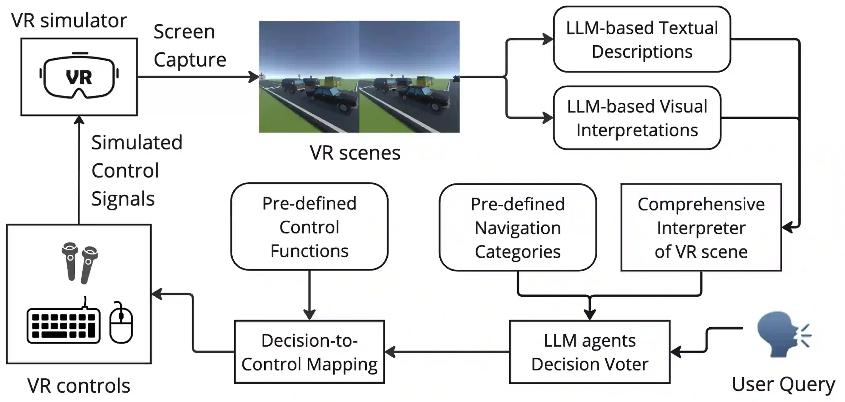 翻译:导航是虚拟现实(VR)中自动化探索的基本任务之一。现有技术主要集中于360度图像数据集与三维模拟器中的路径优化,无法直接应用于沉浸式VR环境。为弥补这一空白,本文提出NavAI——一个基于大语言模型(LLM)的可泛化导航框架,其支持跨不同VR应用的基本动作与复杂目标导向任务。我们在三个不同的VR环境中通过目标导向型任务与探索型任务对NavAI进行评估。实验结果表明,该框架在目标导向任务中取得了89%的成功率,展现出较高的准确性。我们的分析同时揭示了当前完全依赖大语言模型的局限性,尤其是在需要进行动态目标评估的场景中。最后,我们讨论了实验过程中观察到的不足,并对未来研究方向提出了展望。