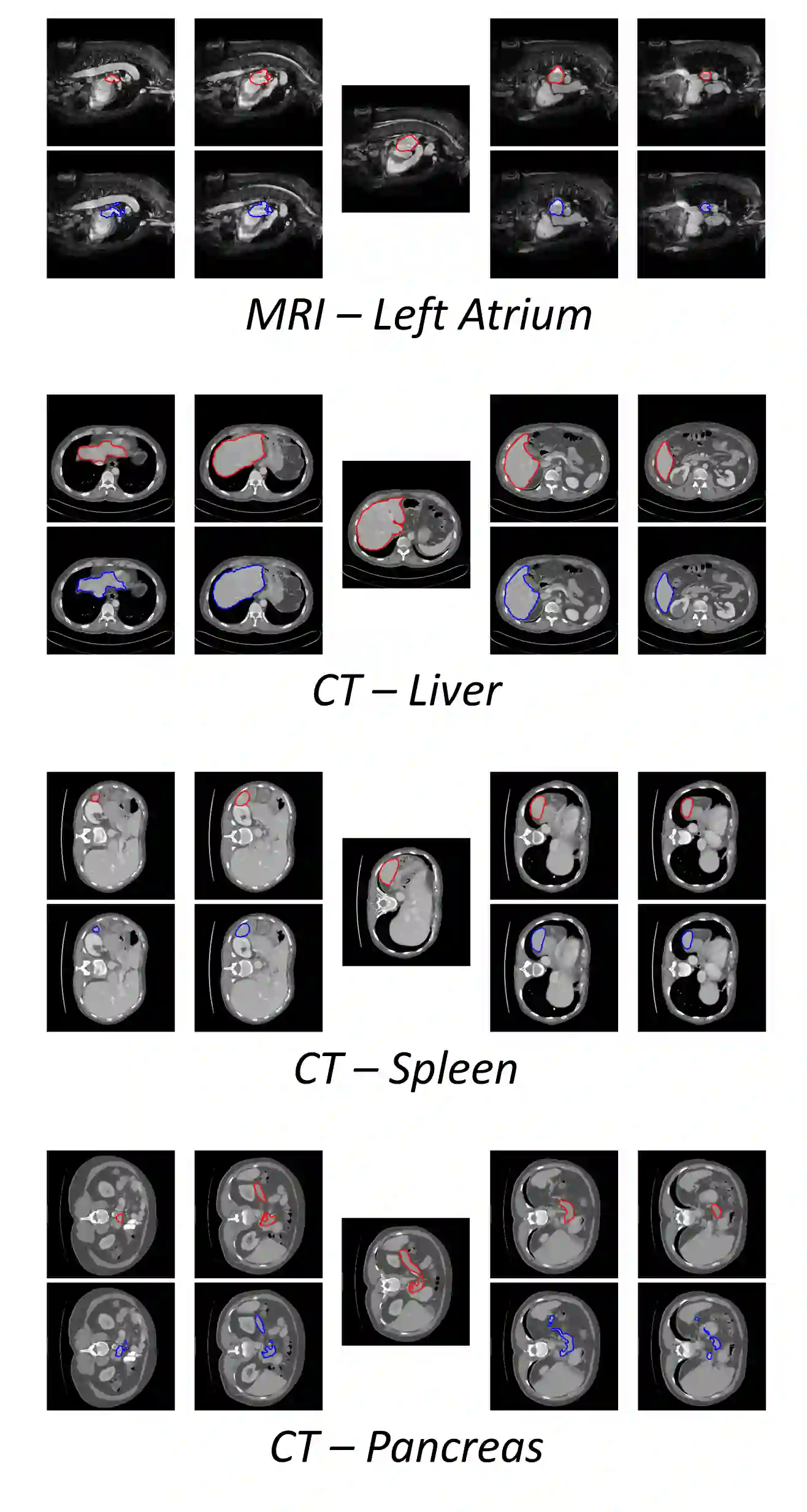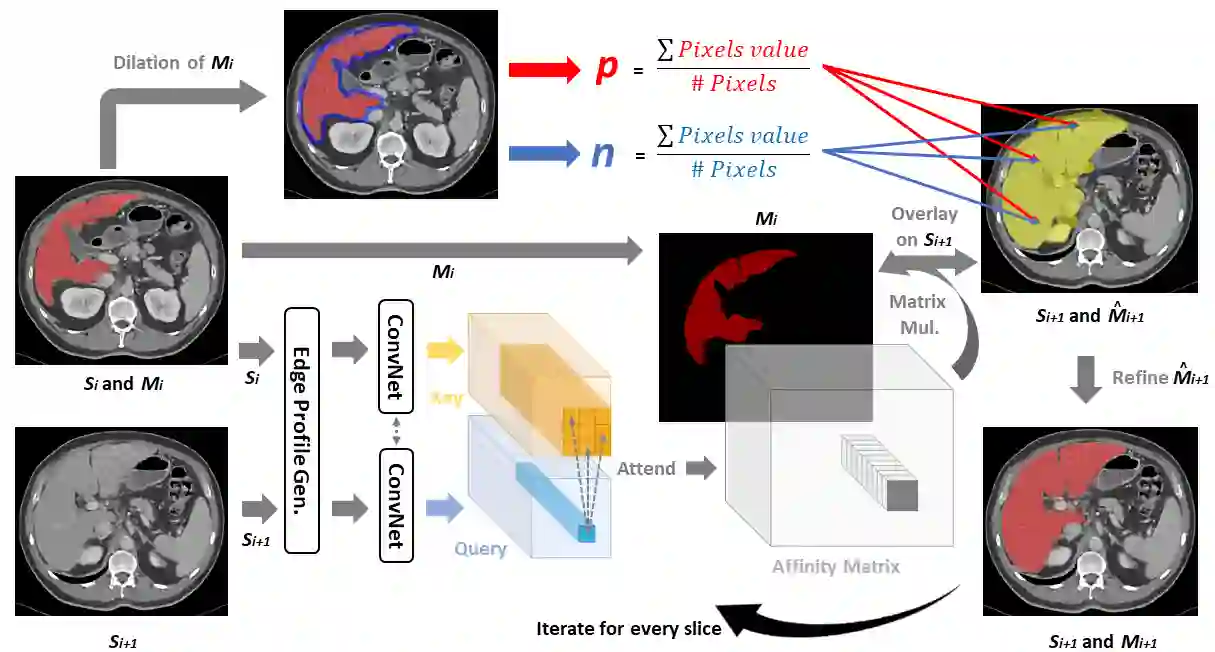 翻译:这项工作的目标是将3D卷中的任何任意利益结构(SOI)分解为3D卷中的任何任意利益结构(SOI),只说明一个片段(即半自动3D分割)。我们表明,只要在连续切片之间传播2D切片分割,同时在连续切片之间以亲监督的方式学习,即切片重建,就可以实现高度的精确性。具体地说,我们比较了称为Sli2Vol的拟议框架,有监督的方法和另外两种不受监督/自监督的切片登记方法,涉及8个公共数据集(CT和MRI扫描),横跨9个不同的SOIs。在没有任何参数调整的情况下,该模型在大多数基准中,包括在培训期间看不见的基准中,以Dice分数(0-100级)达到优异性性性表现。我们的结果显示,拟议方法在来自不同机器的数据和不同的SOIS:一个主要使用半自动分离方法,通常在完全监督的方法中挣扎。源代码将在https://githliub.com/pakheung上公开提供。