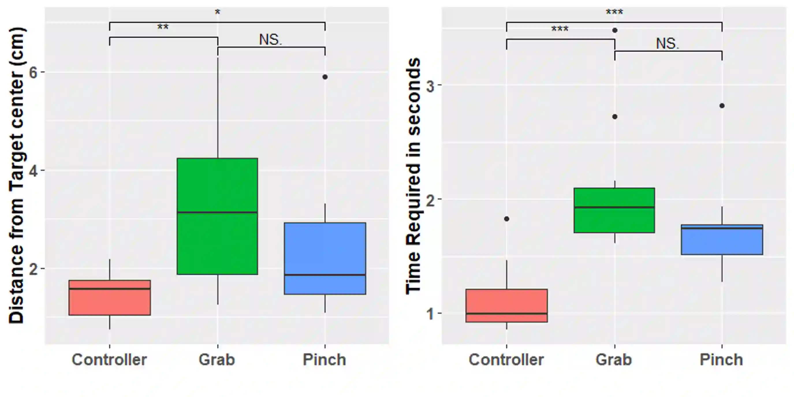 Grabbing virtual objects is one of the essential tasks for Augmented, Virtual, and Mixed Reality applications. Modern applications usually use a simple pinch gesture for grabbing and moving objects. However, picking up objects by pinching has disadvantages. It can be an unnatural gesture to pick up objects and prevents the implementation of other gestures which would be performed with thumb and index. Therefore it is not the optimal choice for many applications. In this work, different implementations for grabbing and placing virtual objects are proposed and compared. Performance and accuracy of the proposed techniques are measured and compared.