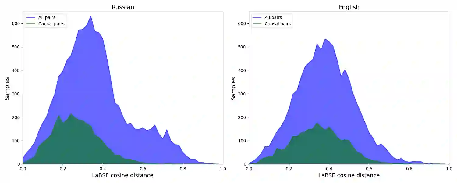 翻译:检测文本中的隐含因果关系是一项需要常识和世界知识的任务。现有的数据集要么侧重于常识因果推理,要么侧重于明显的因果关系。在这项工作中,我们展示了标题“因果关系 ”, 这是用于检测新闻头条新闻之间隐含因果关系的数据集。数据集包括来自英国新闻的5 000多条头条新闻和来自俄罗斯新闻的9 000多条头条新闻,通过众包标注。这些对子从完全不相干或属于同一一般专题,到包括因果关系和反驳关系。我们还展示了一组模型和实验,以证明数据集的有效性,包括基于多语言的因果性检测XLM-ROBERTA模型和基于GPT-2的可能效果预测模型。