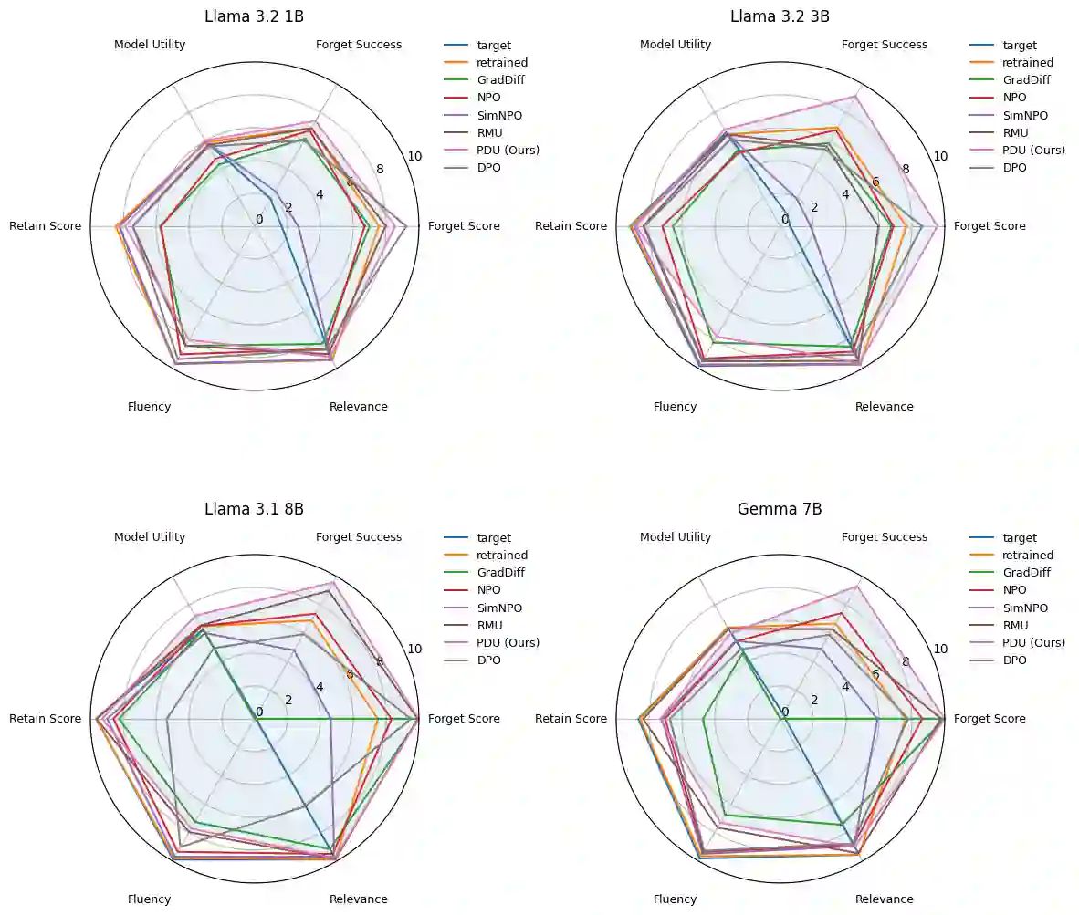 翻译:部署于实际场景中的大语言模型日益面临需要遗忘敏感、过时或专有信息的需求。现有遗忘方法通常将遗忘与保留表述为正则化权衡,将两个目标合并为单一标量化损失。这常导致优化不稳定及在保留数据上的性能下降,尤其在激进遗忘条件下更为明显。我们提出一种将大语言模型遗忘重构为约束优化问题的新范式:通过一种新颖的对数几率边际平坦化损失在指定遗忘集上显式驱动输出分布趋向均匀性以强制实现遗忘,同时通过独立保留集上的硬约束保持知识留存。相较于基于熵的目标函数,我们的损失函数无需softmax运算、数值稳定且保持非消失梯度,从而实现更高效稳健的优化。我们采用可扩展的原对偶算法求解该约束问题,该算法通过对偶变量的动态变化揭示遗忘与保留间的权衡关系,且无需额外计算开销。在TOFU和MUSE基准测试中对多种大语言模型架构的评估表明,本方法始终匹配或超越现有最优基线,在有效移除目标信息的同时保持下游任务效用。
