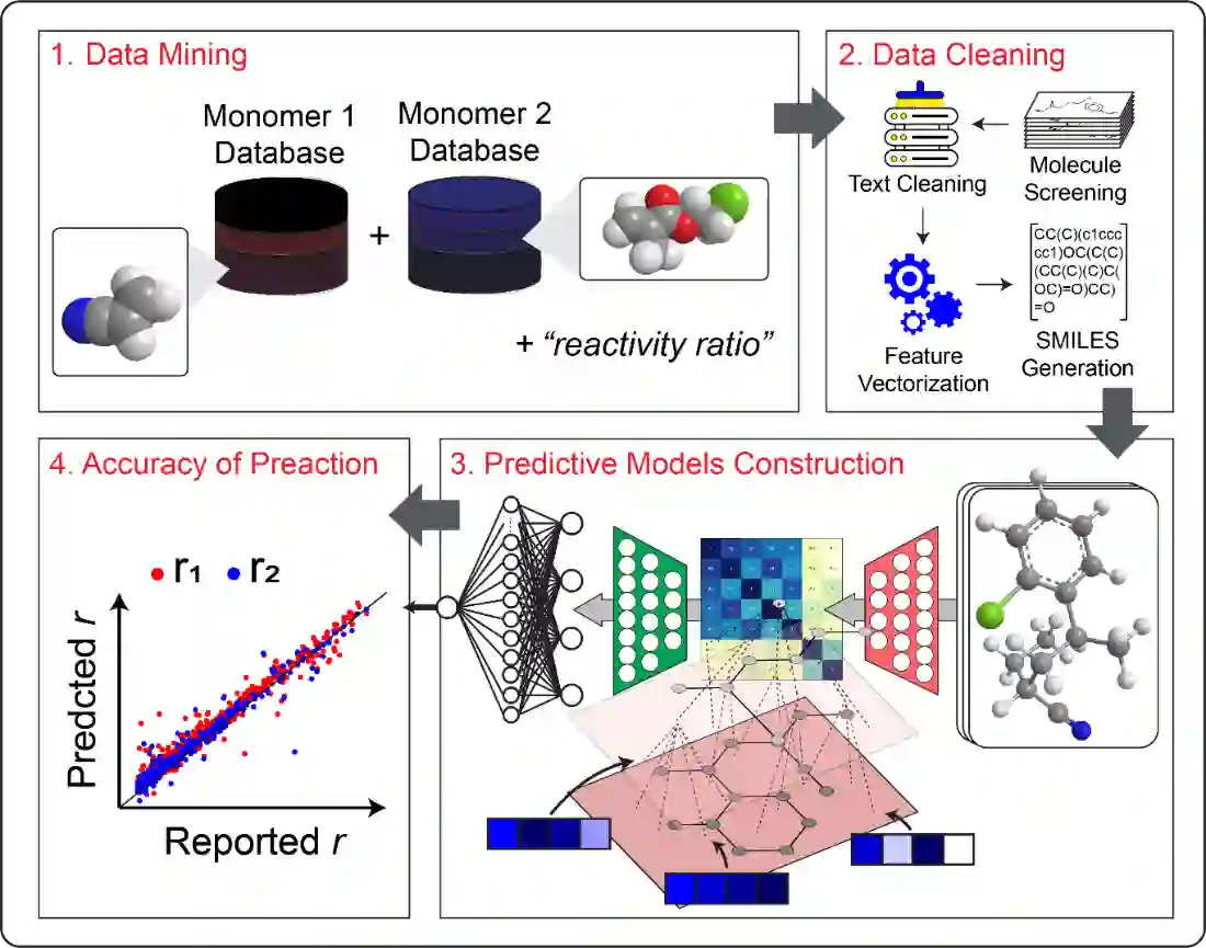 翻译:在这里,我们演示机器学习是如何根据单体分子结构预测共聚物反应率的。 我们结合了多任务学习、多投入和图形关注网络,以建立一个能够预测单体化学结构反应率的模型。