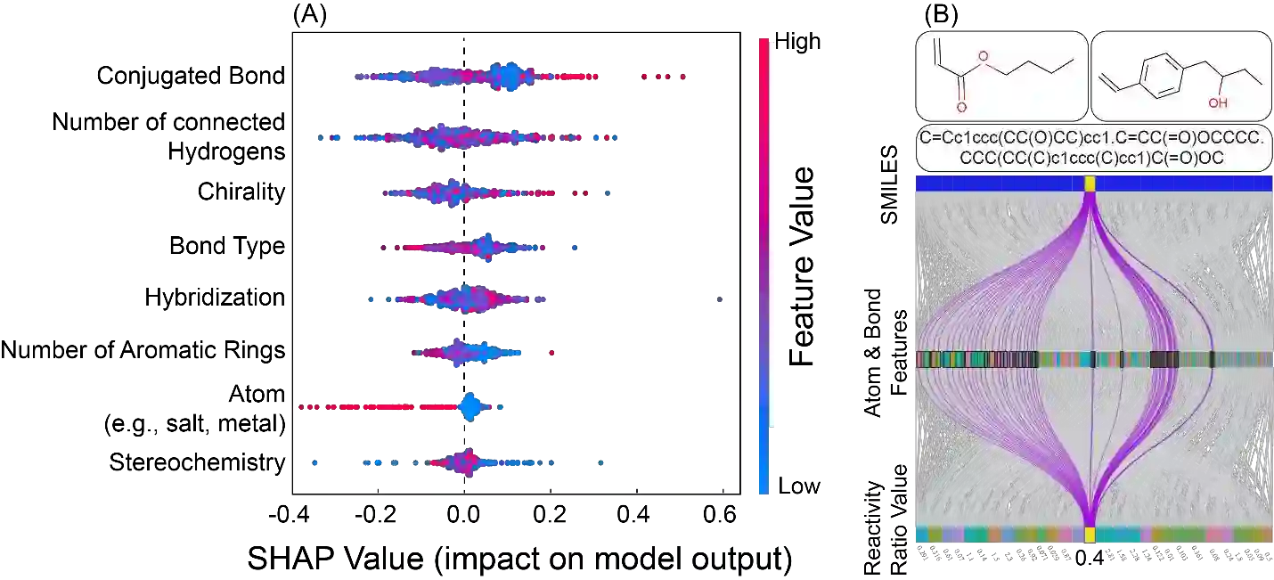 Here, we demonstrate how machine learning enables the prediction of comonomers reactivity ratios based on the molecular structure of monomers. We combined multi-task learning, multi-inputs, and Graph Attention Network to build a model capable of predicting reactivity ratios based on the monomers chemical structures.