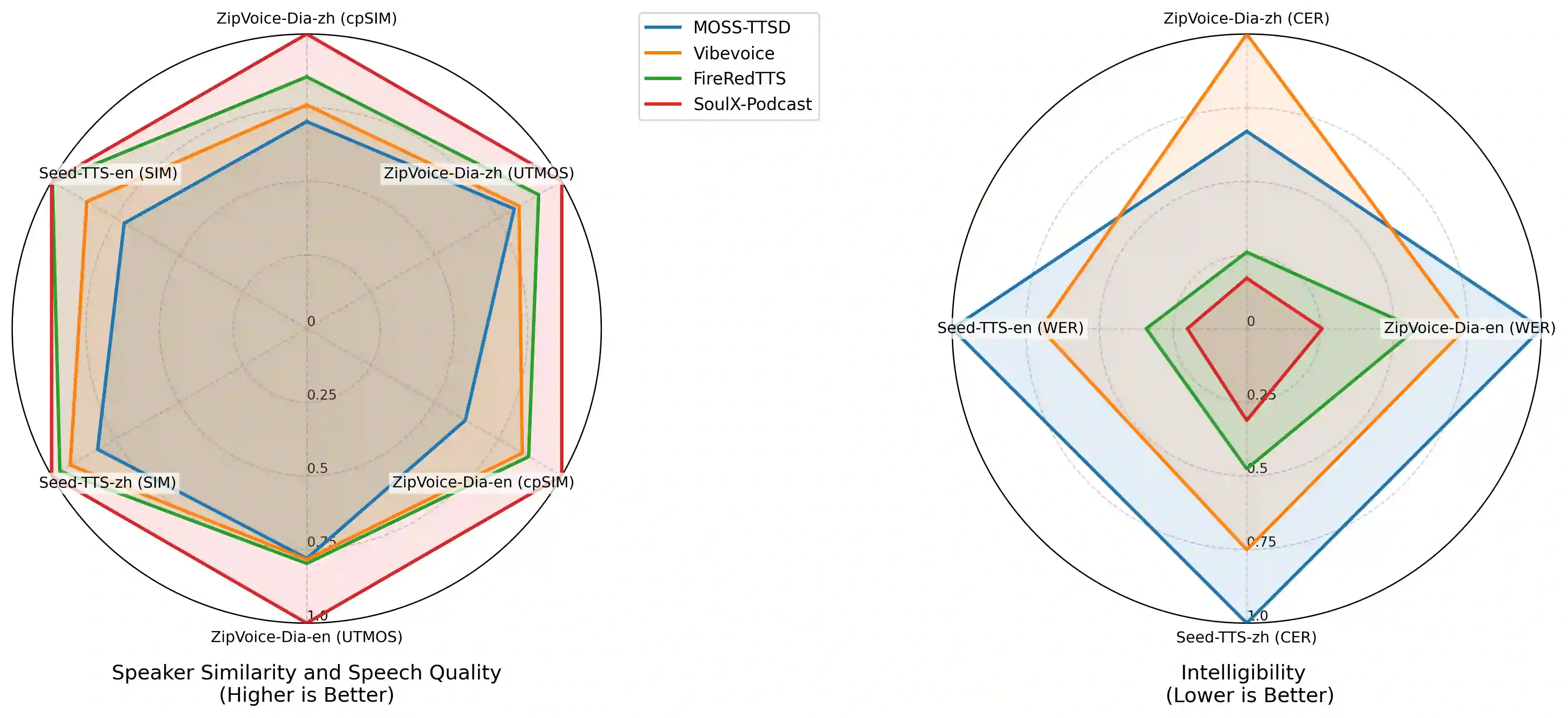 翻译:近年来,文本到语音(TTS)合成技术取得了显著进展,显著提升了语音的表现力与自然度。然而,现有系统大多针对单说话人合成设计,在生成连贯的多说话人对话语音方面仍存在不足。本技术报告介绍了SoulX-Podcast系统,该系统专为播客风格的多轮次、多说话人对话语音生成而设计,同时在传统TTS任务中也达到了最先进的性能。为满足多轮次口语对话对更高自然度的要求,SoulX-Podcast集成了多种副语言控制功能,并支持普通话、英语以及包括四川话、河南话和粤语在内的多种汉语方言,从而实现更具个性化的播客风格语音生成。实验结果表明,SoulX-Podcast能够连续生成超过90分钟的对话,同时保持稳定的说话人音色与平滑的说话人转换。此外,说话人展现出上下文自适应的韵律特征,能够反映对话推进过程中自然的节奏与语调变化。在多项评估指标上,SoulX-Podcast在独白TTS与多轮次对话语音合成任务中均实现了最先进的性能。