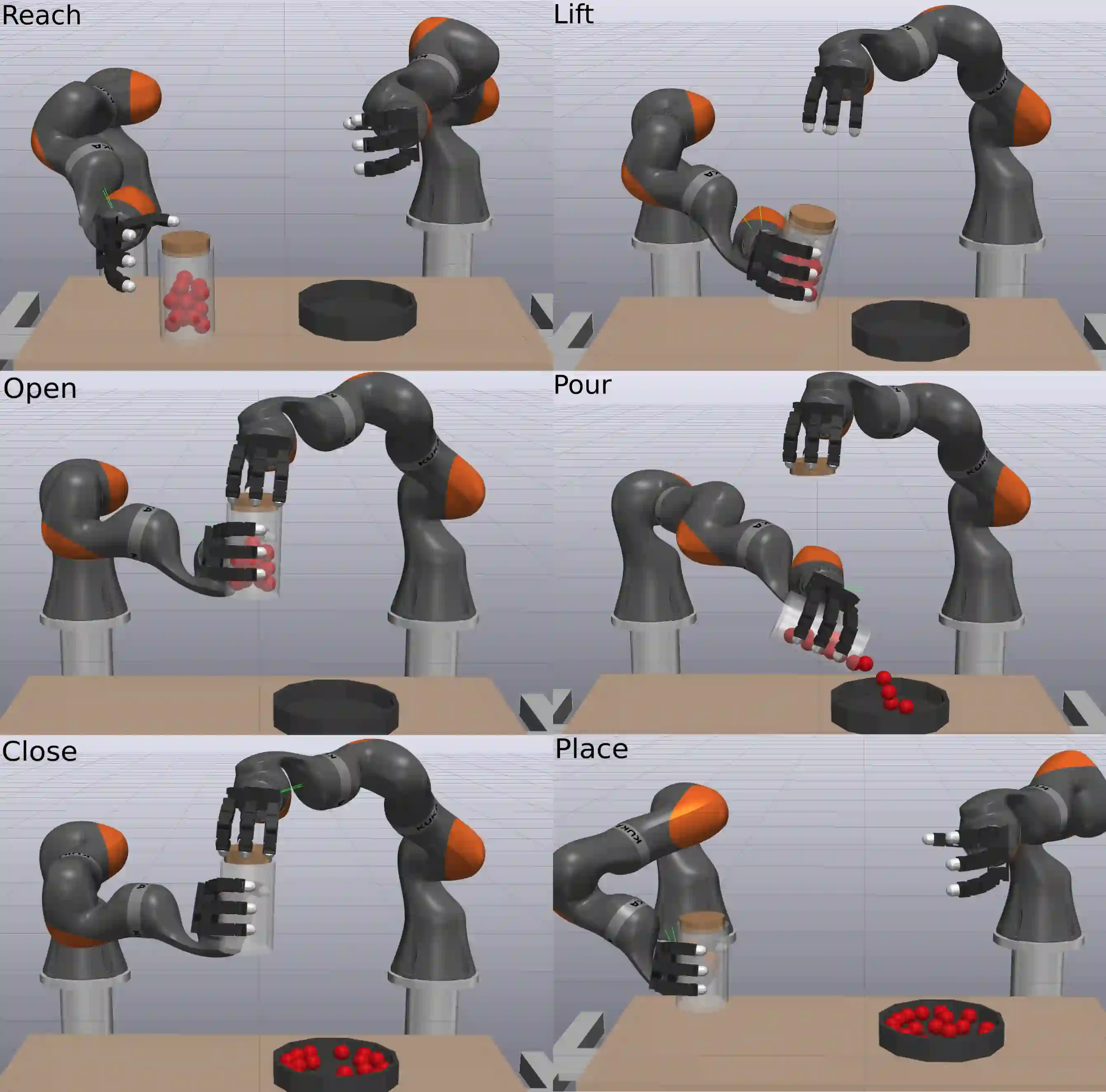 翻译:我们提出了一个符合要求的摩擦接触的精密配方,并提出了一种强大的、有性能的方法来在实践中解决这一问题。通过分析消除接触限制,我们获得了一个不受限制的锥体问题。我们的解答器已证明了全球趋同和热启动是有效的,能够以互动速率进行模拟。我们开发了接触器的精密分析表达方式,使我们能够以清晰的物理术语描述我们的模型,并严格地描述我们的近似特征。此外,这也使我们不仅能够模拟点接触,而且能够纳入符合要求的接触补丁的精密模型。我们的时间跳板计划包括中点规则,我们通过摩擦接触也能够达到第二顺序的精确度。我们引入了一些精确度指标,并展示了我们的方法优于现有的商业和开放源替代物,而没有牺牲准确性。最后,我们展示了以互动速率对机器人操纵任务进行强力模拟,并准确解决了震动和接触过渡,这是有意义的模拟到真实传输所需要的。我们的方法在开放源机器人工具包Drake中实施。