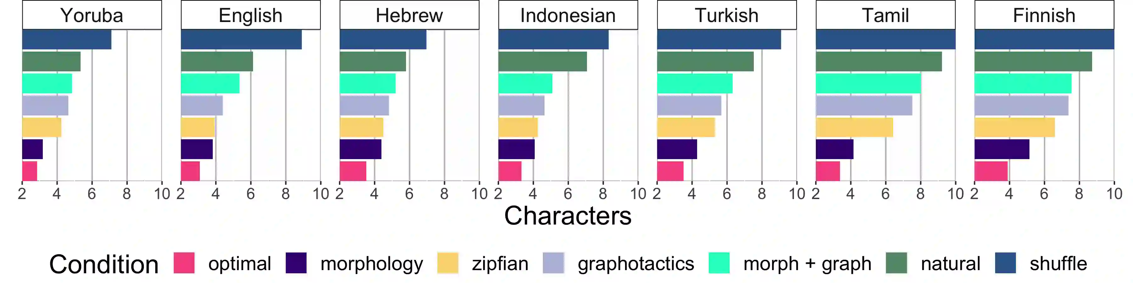 翻译:文字形状的词汇含义绘图是自然语言的一个主要特征。虽然使用压力可能将短词划为常用词(Zipf的缩写法),但需要有一个有成果的、开放的词汇、对符号序列的当地限制以及各种其他因素,这些因素都决定了世界语言的词汇。尽管这些因素在形成词汇结构方面很重要,但这些因素的相对贡献尚未充分量化。用对词汇的编码理论观点和使用新的基因化统计模型,我们界定了在各种限制下可压缩词汇的上界。我们从7种类型多样的语言中研究公司,我们利用这些上界来量化词汇的最佳性,并探讨自然代码主要制约的相对成本。我们发现(组合)形态学和图形学可以充分说明自然代码的多数复杂性,按代码长度来衡量。