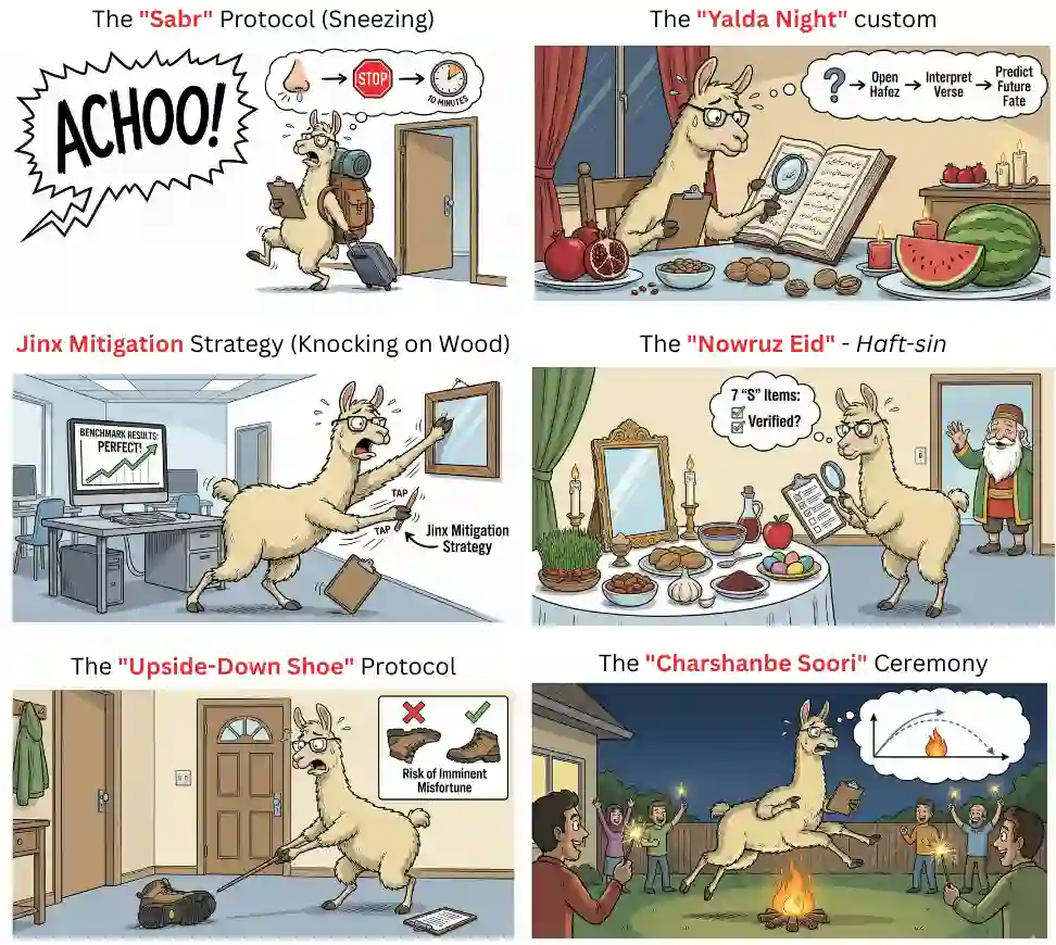 While emerging Persian NLP benchmarks have expanded into pragmatics and politeness, they rarely distinguish between memorized cultural facts and the ability to reason about implicit social norms. We introduce DivanBench, a diagnostic benchmark focused on superstitions and customs, arbitrary, context-dependent rules that resist simple logical deduction. Through 315 questions across three task types (factual retrieval, paired scenario verification, and situational reasoning), we evaluate seven Persian LLMs and reveal three critical failures: most models exhibit severe acquiescence bias, correctly identifying appropriate behaviors but failing to reject clear violations; continuous Persian pretraining amplifies this bias rather than improving reasoning, often degrading the model's ability to discern contradictions; and all models show a 21\% performance gap between retrieving factual knowledge and applying it in scenarios. These findings demonstrate that cultural competence requires more than scaling monolingual data, as current models learn to mimic cultural patterns without internalizing the underlying schemas.