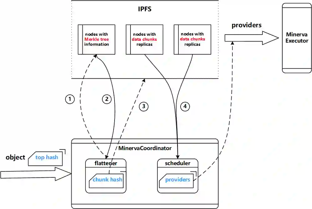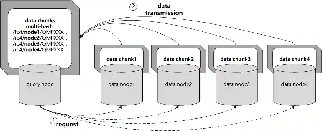 Data silos create barriers in accessing and utilizing data dispersed over networks. Directly sharing data easily suffers from the long downloading time, the single point failure and the untraceable data usage. In this paper, we present Minerva, a peer-to-peer cross-cluster data query system based on InterPlanetary File System (IPFS). Minerva makes use of the distributed Hash table (DHT) lookup to pinpoint the locations that store content chunks. We theoretically model the DHT query delay and introduce the fat Merkle tree structure as well as the DHT caching to reduce it. We design the query plan for read and write operations on top of Apache Drill that enables the collaborative query with decentralized workers. We conduct comprehensive experiments on Minerva, and the results show that Minerva achieves up to $2.08 \times$ query performance acceleration compared to the original IPFS data query, and could complete data analysis queries on the Internet-like environments within an average latency of $0.615$ second. With collaborative query, Minerva could perform up to $1.39 \times$ performance acceleration than centralized query with raw data shipment.