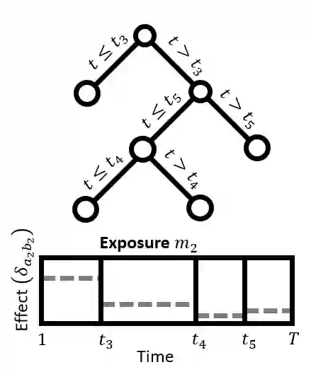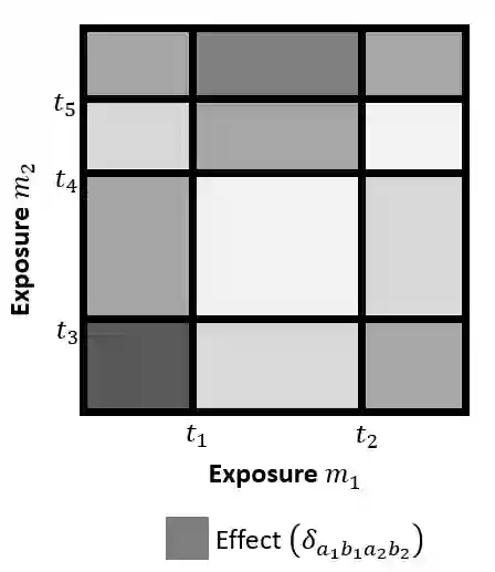 翻译:研究旨在确定关键窗口、接触能够改变未来健康结果的时间期限,并估计接触-反应关系; 现有的统计方法侧重于估计产妇接触高时分分辨率观察到的单一环境化学品(如整个怀孕期间每周)与儿童健康结果之间的关联; 将高时分分辨率观测到的多种化学品扩大到多种化学品会产生一个维度问题,而且缺乏统计方法; 我们提议了一个以树为基础的接触混合物模型,在高时分分辨率下观测到。 提议的方法使用结构化树脂添加剂,确定时间溶解预测器和变量选择之间的结构化主要效应和相互作用,从模型预测器中选择与结果无关的模型预测器。 我们采用我们的方法模拟和分析怀孕期间每周测量的五种化学品之间的关系,并在一个康乐罗拉克出生组中测出出生体重。 我们确定了关键窗口,在此期间,微粒物质、二氧化硫化合物和温度与出生体重和微粒质颗粒物质与温度之间的相互作用有负联系。
