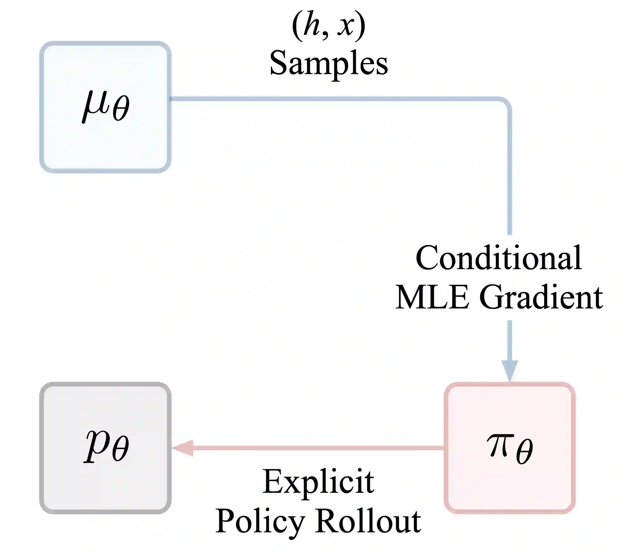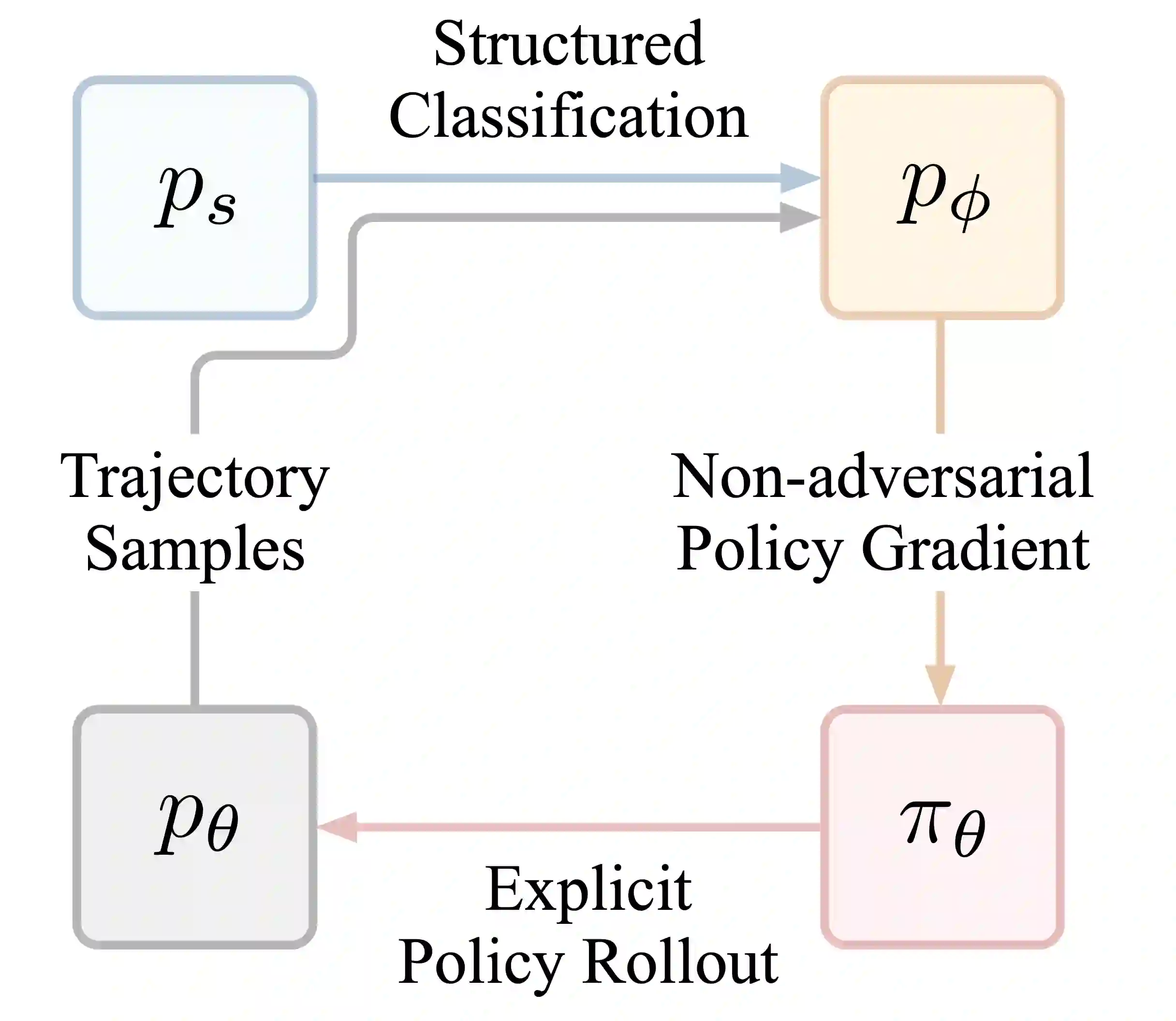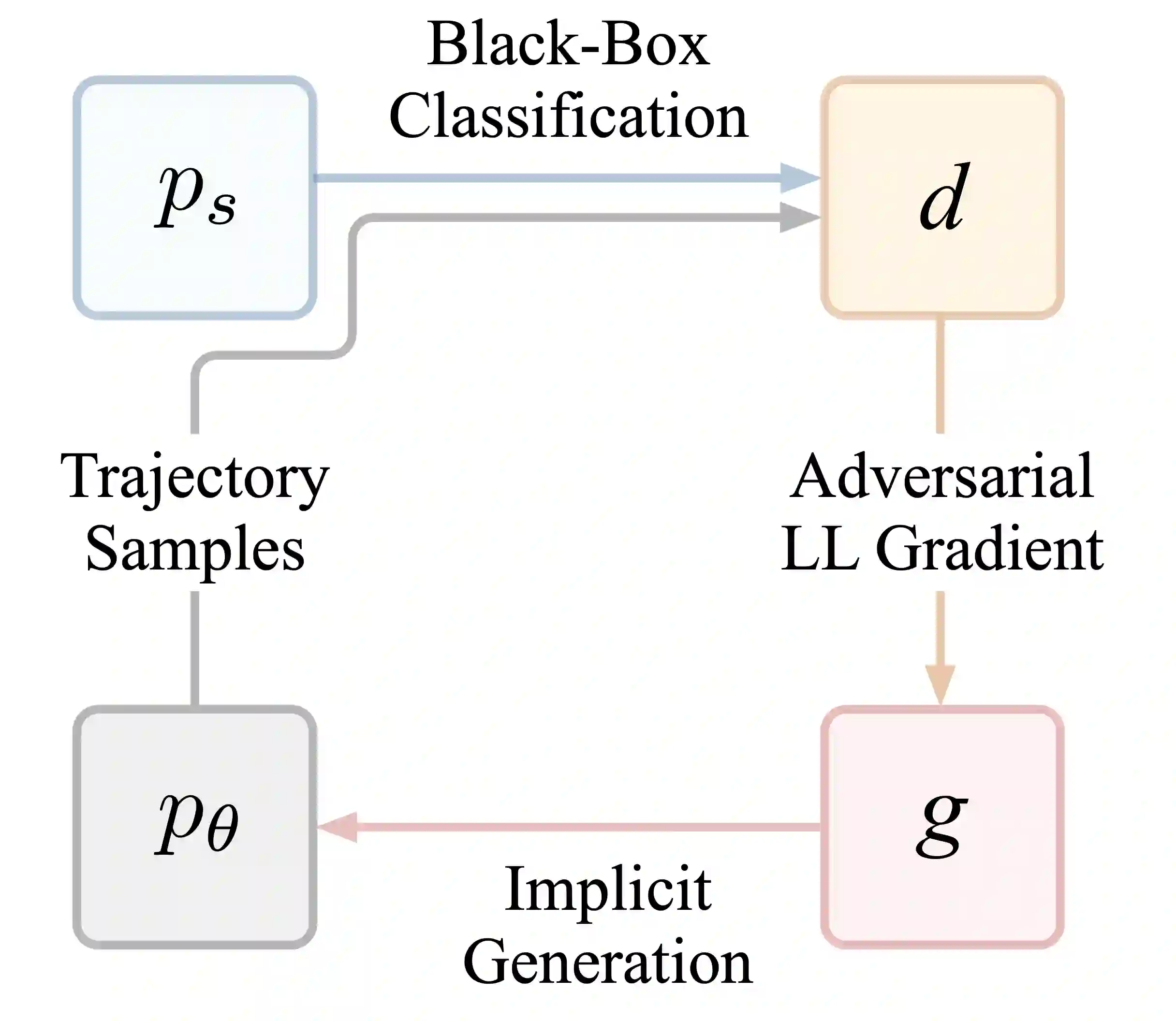 Consider learning a generative model for time-series data. The sequential setting poses a unique challenge: Not only should the generator capture the conditional dynamics of (stepwise) transitions, but its open-loop rollouts should also preserve the joint distribution of (multi-step) trajectories. On one hand, autoregressive models trained by MLE allow learning and computing explicit transition distributions, but suffer from compounding error during rollouts. On the other hand, adversarial models based on GAN training alleviate such exposure bias, but transitions are implicit and hard to assess. In this work, we study a generative framework that seeks to combine the strengths of both: Motivated by a moment-matching objective to mitigate compounding error, we optimize a local (but forward-looking) transition policy, where the reinforcement signal is provided by a global (but stepwise-decomposable) energy model trained by contrastive estimation. At training, the two components are learned cooperatively, avoiding the instabilities typical of adversarial objectives. At inference, the learned policy serves as the generator for iterative sampling, and the learned energy serves as a trajectory-level measure for evaluating sample quality. By expressly training a policy to imitate sequential behavior of time-series features in a dataset, this approach embodies "generation by imitation". Theoretically, we illustrate the correctness of this formulation and the consistency of the algorithm. Empirically, we evaluate its ability to generate predictively useful samples from real-world datasets, verifying that it performs at the standard of existing benchmarks.