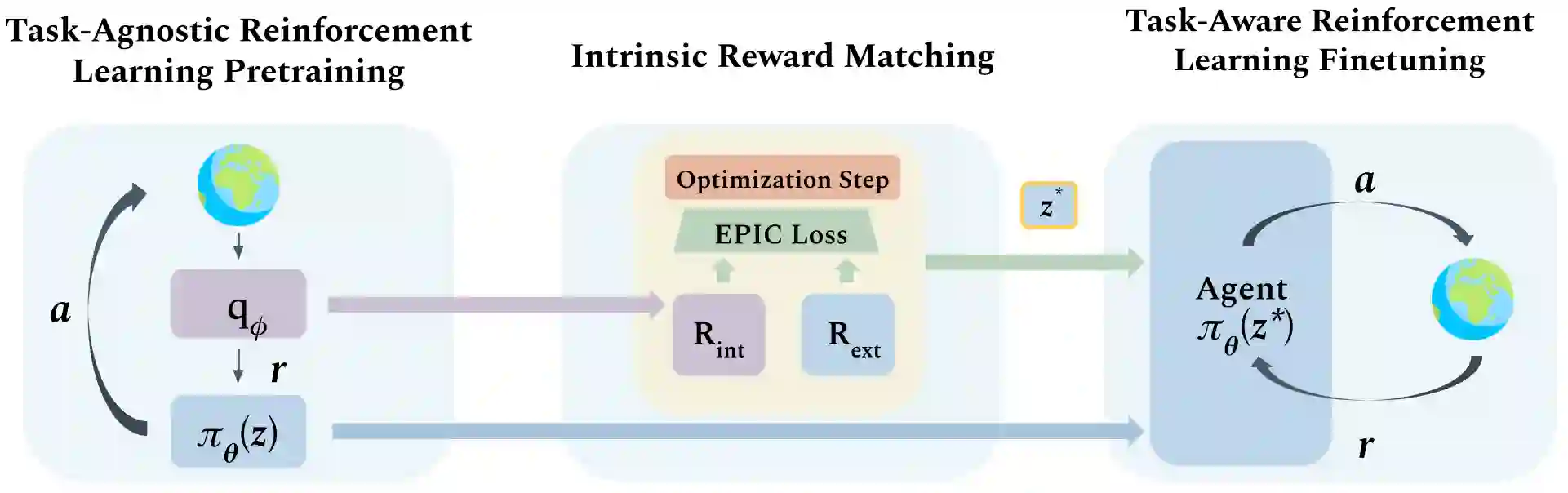 翻译:虽然未受监督的技能发现在自主获取行为原始技术方面显示出了希望,但在方法上仍然存在着任务-不可知技能前训练与下游、任务-认知微调之间的巨大脱节。我们提出“Intrinsic Reward Reward 匹配”(IRM),它通过一个在微调期间常常被丢弃的“$textit{skill discriminor}$”来统一这两个学习阶段。常规方法直接在政策一级对经过预先训练的代理人进行微调,常常依靠昂贵的环境推出,以经验方式确定最佳技能。然而,对一项任务的最简单而完整的描述往往是奖赏功能本身,而技能学习方法则通过与技能政策相对应的歧视者来学习“$textit{intrinsic}$。我们提议利用技能歧视者到“$\textitripit{match}$troduction legtroduction $trodublemental lemental legal laft laft laft laft laft to proforgy legy laft laft laft laft laft leg