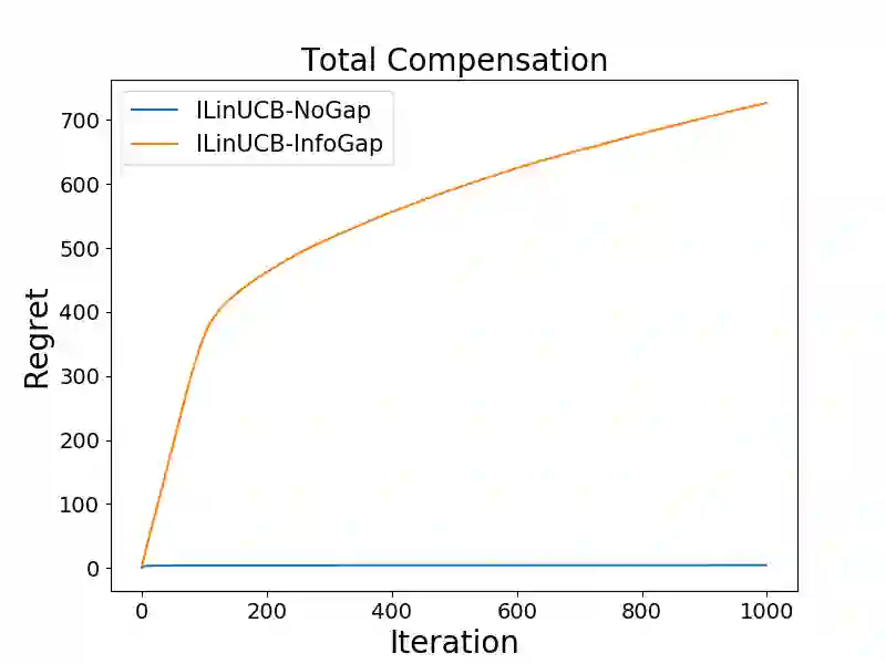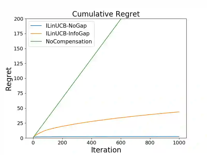 翻译:我们研究在线性强盗中鼓励对近视使用者进行探索的问题,用户往往以预测最高的报酬而不是探索探索利用手臂。为了最大限度地获得长期奖励,该系统提供补偿,激励使用者拔出探索性武器,目的是平衡开发、勘探和补偿之间的取舍。我们考虑一种新的、实际的、有动机的环境,用户观察到的背景特征比系统使用的背景特征更加丰富,例如,系统无法获取基于用户私人信息的特征。我们提出了鼓励在这种信息差距下进行探索的新方法,并证明该方法既实现了亚线性遗憾,又实现了亚线性赔偿。我们从理论上和实验上分析了由于信息差距而增加的补偿,相比之下,系统可以使用与用户相同的背景特征,即没有信息差距。我们还提供了我们问题较少的补偿。