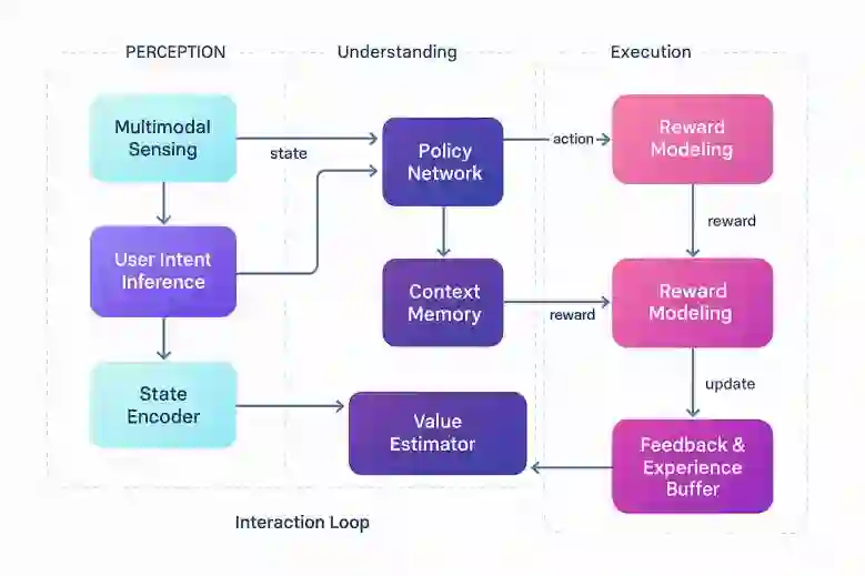 翻译:本研究针对智能人机交互中的动态性与复杂性挑战,提出了一种基于强化学习的优化框架,以提升长期回报与整体体验。人机交互被建模为马尔可夫决策过程,通过定义状态空间、动作空间、奖励函数与折扣因子来捕捉用户输入、系统反馈及交互环境的动态特性。该方法结合策略函数、价值函数与优势函数,通过策略梯度更新参数,并在交互过程中持续调整以平衡即时反馈与长期收益。为验证该框架,采用多模态对话与场景感知数据集作为实验平台,对折扣因子、探索率衰减、环境噪声及数据不平衡等关键因素进行了多组敏感性实验。评估采用累积奖励、平均回合奖励、收敛速度与任务成功率等指标。结果表明,所提方法在多项指标上优于现有方法,在保持策略稳定性的同时实现了更高的任务完成度。对比实验进一步证实了其在交互效率与长期回报方面的优势,彰显了强化学习在优化人机交互中的显著价值。