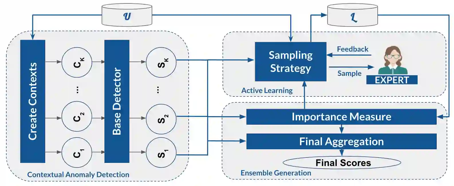 翻译:在背景异常检测(CAD)中,对象仅在特定背景下被视为异常。大多数现有的 CAD 方法使用基于用户指定背景特征的单一背景。然而,在实践中,确定正确的背景可能非常具有挑战性,特别是在数据集中,具有大量属性。此外,在现实世界系统中,在不同背景下可能出现多种异常,因此,需要结合几种“有用”背景来公布这些异常。在这项工作中,我们利用积极学习和集合来有效发现在真实背景和行为属性未知的情况下复杂的背景异常。我们提出了一个新颖的方法,称为WisCon(背景环境环境特征),这在功能集中自动创造背景。我们的方法根据并非所有有用环境都具有同等重要性的假设,构建了多种环境的组合。实验表明WisCon大大超越了不同类别(即主动分类器、未经监督的背景和非背景异常特征的异常异常特征)中的现有基准。我们提出的新办法,称为Wiscon(背景环境环境环境特征),它自动创建了特征集成背景环境环境环境环境。我们的方法基于不同的重要分数的假设, 成功地展示了一种背景背景背景环境。