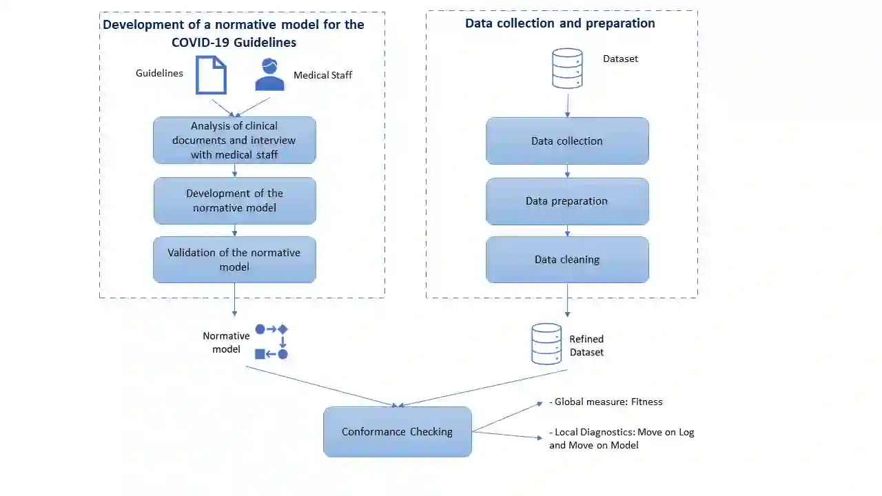 翻译:在这种研究空间内,我们进行了一项与德国Uniklinik Aachen医院的强化护理病房有关的案例研究,其目的是双重的:制定代表治疗COVID-19病人临床准则的规范模式,分析观察到的行为(记录在医院信息系统中)是否遵守了这些准则;我们表明,通过合规检查技术,有可能分析COVID-19病人的护理过程,突出与临床准则的主要偏差;结果为医生提供了有用的指示,以改进治疗过程,确保服务质量和病人满意度;我们把由此产生的模式作为开放源的BPMN档案分享。