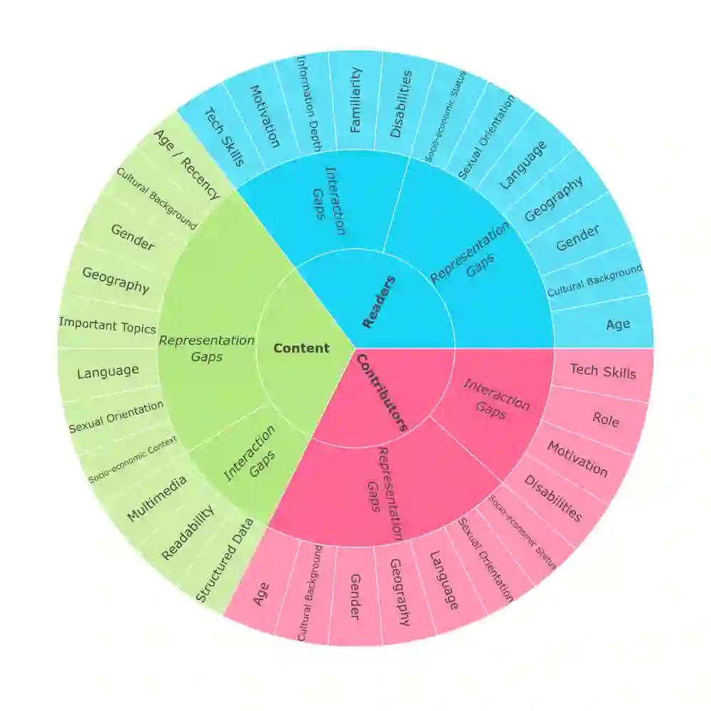 翻译:2019年1月,在维基媒体运动2030年战略方向的推动下,维基媒体基金会研究小组确定需要制定知识差距指数 -- -- 一种综合指数,以支持维基媒体运动的决策者,方法是提供:一个鼓励有条理和有针对性的集思广益讨论的框架;关于维基媒体项目的知识差距状况的数据,为决策提供信息,并协助衡量该运动大规模举措的长期影响。在2020年7月首次发布后,该研究小组为维基媒体项目制定了知识差距分类的第二完整草案,作为建立知识差距指数的第一步。我们研究了学者、研究人员、从业人员、社区成员和附属机构的250多处参考资料 -- -- 揭示了读者、贡献者和维基媒体项目内容方面的知识差距的证据。我们详细阐述了该文件中的知识差距的研究结果,并汇编了该文件中的知识差距的分类,我们在这里对知识差距进行了描述、分组和分类,将其纳入一个结构化的框架。你将在这项工作的其余部分学到更多知识差距的分类将作为落实和量化知识公平的基础,这是2030年两个战略方向之一,通过知识差距。