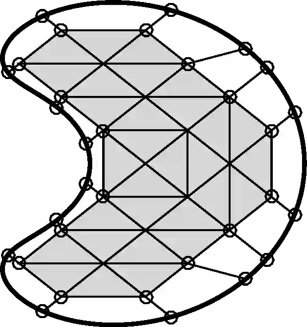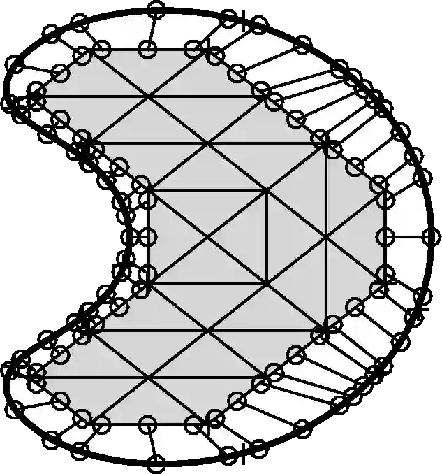翻译:这项工作分析了一个领域( 不一定是多元的) 线性弹性问题高顺序混合的 Galerkin (HDG) 方法。 域被一个可计算 HDG 解决方案的多面计算计算域所近似。 将旋转作为未知因素之一, 使我们能够使用偏移的梯度, 以在计算域中明确显示边界数据。 边界数据由真实边界转换到计算边界, 以直线内分母为单位, 直线内分母取决于 Cauchy 压力阵列和旋转。 在计算和真实边界之间的近距离假设下, 方案被显示是精确的, 即使几乎无法压缩, 也提供最佳的误差估计。 提供了两个二维的数值实验 。