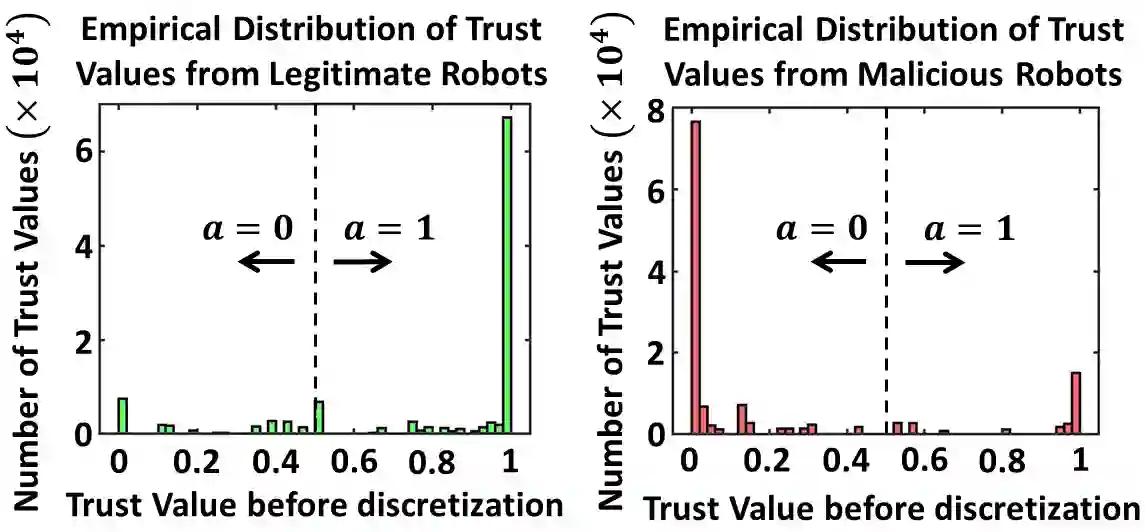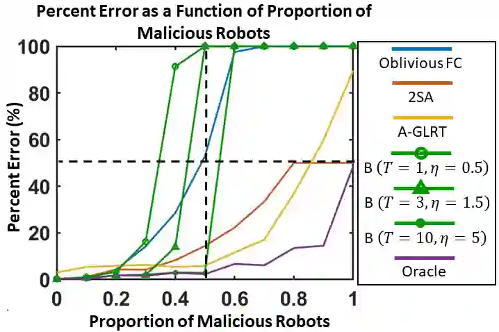 翻译:我们开发了一个具有弹性的二进制假设测试框架, 用于在对抗性多机器人人群测量任务中进行决策。 这个框架利用机器人之间的随机信任观察, 以便在一个中央集散中心( FC) 达成可移动的、耐久的决策, 即使i) 网络中存在恶意机器人, 其数量可能大于合法机器人的数量, 并且ii) FC 使用来自所有机器人的一次性杂音测量方法。 我们从中得出两种算法来实现这一目标。 第一个是两个阶段方法( 2SA ), 根据收到的信任观察来估计机器人的合法性, 并且可以将最坏的恶意袭击中的检测误差最小化。 这里, 恶意机器人的比例是已知的, 但也是任意的。 对于一个未知的恶意机器人比例, 我们开发了Aversarial通用的隐性比比对等测试( A- GLRT), 使用报告的机器人测量和信任观察方法来估算机器人的可信度, 他们的汇报策略, 以及正确的假设。 我们利用特殊的问题结构来显示这个方法, 即使在最坏的情况下, 也能够计算出Sylormal missal missial miss missal 。</s>
