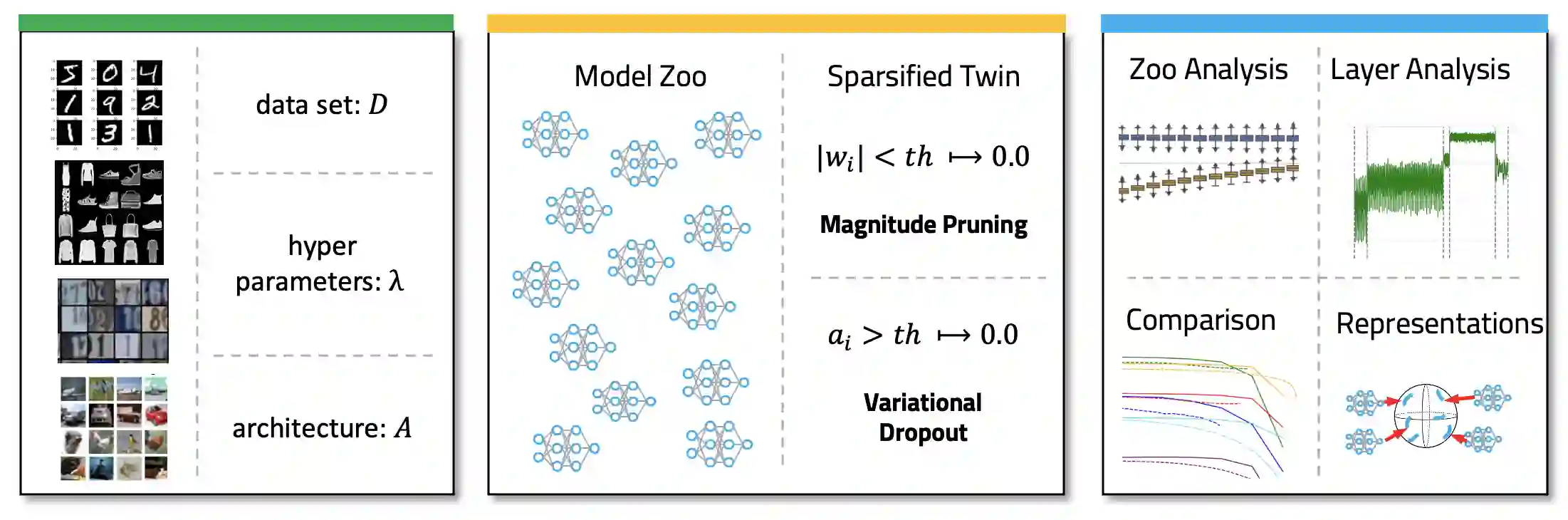 With growing size of Neural Networks (NNs), model sparsification to reduce the computational cost and memory demand for model inference has become of vital interest for both research and production. While many sparsification methods have been proposed and successfully applied on individual models, to the best of our knowledge their behavior and robustness has not yet been studied on large populations of models. With this paper, we address that gap by applying two popular sparsification methods on populations of models (so called model zoos) to create sparsified versions of the original zoos. We investigate the performance of these two methods for each zoo, compare sparsification layer-wise, and analyse agreement between original and sparsified populations. We find both methods to be very robust with magnitude pruning able outperform variational dropout with the exception of high sparsification ratios above 80%. Further, we find sparsified models agree to a high degree with their original non-sparsified counterpart, and that the performance of original and sparsified model is highly correlated. Finally, all models of the model zoos and their sparsified model twins are publicly available: modelzoos.cc.