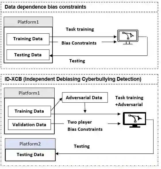 Swear words are a common proxy to collect datasets with cyberbullying incidents. Our focus is on measuring and mitigating biases derived from spurious associations between swear words and incidents occurring as a result of such data collection strategies. After demonstrating and quantifying these biases, we introduce ID-XCB, the first data-independent debiasing technique that combines adversarial training, bias constraints and debias fine-tuning approach aimed at alleviating model attention to bias-inducing words without impacting overall model performance. We explore ID-XCB on two popular session-based cyberbullying datasets along with comprehensive ablation and generalisation studies. We show that ID-XCB learns robust cyberbullying detection capabilities while mitigating biases, outperforming state-of-the-art debiasing methods in both performance and bias mitigation. Our quantitative and qualitative analyses demonstrate its generalisability to unseen data.