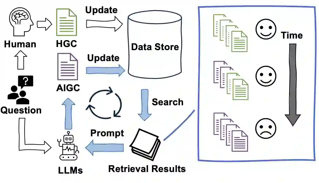The practice of Retrieval-Augmented Generation (RAG), which integrates Large Language Models (LLMs) with retrieval systems, has become increasingly prevalent. However, the repercussions of LLM-derived content infiltrating the web and influencing the retrieval-generation feedback loop are largely uncharted territories. In this study, we construct and iteratively run a simulation pipeline to deeply investigate the short-term and long-term effects of LLM text on RAG systems. Taking the trending Open Domain Question Answering (ODQA) task as a point of entry, our findings reveal a potential digital "Spiral of Silence" effect, with LLM-generated text consistently outperforming human-authored content in search rankings, thereby diminishing the presence and impact of human contributions online. This trend risks creating an imbalanced information ecosystem, where the unchecked proliferation of erroneous LLM-generated content may result in the marginalization of accurate information. We urge the academic community to take heed of this potential issue, ensuring a diverse and authentic digital information landscape.