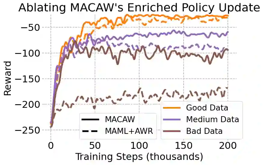 翻译:本文介绍了离线元加强学习(脱线元RL)问题设置,并提出了一个在这个设置中表现良好的算法。离线元加强学习(脱线元RL)类似于广泛成功、监督下的预培训模式,即对大量固定的、预收集的数据(可能来自各种任务)进行预培训,并将模型微调到新任务中,数据相对较少。也就是说,在离线元加强学习(脱线)中,我们在固定的、预收集的一些任务中,对固定的、预收集的数据进行元培训,以适应新任务,新任务中数据数量极小(低于5个目标)的新任务。从离线上看,离线的元加强学习(离线的)新任务和(b)有限的测试任务中的数据,我们既在离线进行离线的MERL数据分析,又在离线培训过程中利用最大可能不安全的或昂贵的数据收集。这就继承了离线的RL的挑战,但是,因为离线的RL一般不考虑向新的任务转移,或者从b)从测试任务中取得有限的数据,我们既在离线进行离线的离线的离线的MER结果的升级的上,我们提议在离线前的升级的升级的升级的升级的升级的模型的升级的升级的升级的升级的升级的升级的升级的升级的计算。