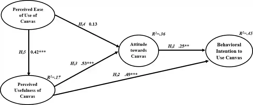 翻译:获得非专有和专有性学习管理系统为用户提供了更丰富的学习经验,提高了教育提供者的兴趣,这项研究旨在评估学生接受坎瓦斯作为新的学习管理系统的学生及其作为东大学电子学习方案网上平台的潜力,这项研究还评估学生是否准备使用坎瓦斯;通过雪球取样,对东大学214名学生进行了调查;为审查模型的有效性,进行了探索因素分析;利用确认工厂分析,验证了探索要素分析结果,分析了这些建筑的相互关系;进行了结构衡平模型,分析这些建筑之间的关系,并使用适当指数对这种关系进行评价;从技术接受模型中采用,研究认为使用容易、有用和态度的构想;研究显示,学生认为在网上平台使用坎瓦斯的有用性和态度,对其使用Canvas的意向具有直接和重大的影响;学生认为易于使用,对其认为有用性分析结果产生了显著的影响,但对于他们使用Canvas的教学指令的态度没有产生显著影响;从技术接受模型中汲取技术成熟性的经验,从而影响学生的学习程度,从而改变其学习程度。