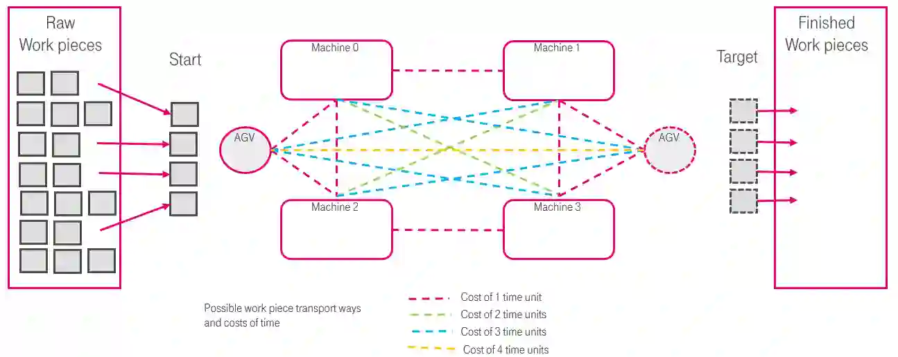 翻译:工作时间安排优化(JSO)的主题涉及一个组织的工作时间安排问题,这样,单一的工作步骤就设定的目标作出最佳安排;本文件提供了一种使用案例,涉及JSO的子部分,即工作商店时间安排问题(JSSP或JSP)。由于许多优化问题都是NP-完成的,JSSP意味着系统中每个节点的复杂性都成倍地增加。使用案例的目的是说明如何在灵活有组织的机器中,与自动地面车辆(AGV)结合,使用控制式程序(CP)和量子计算(QC),为某些工作器件创造最佳的值勤公鸡。介绍了基于CP和Quantum Annaaling模型的典型解决办法的结果,并进行了讨论。在研究项目PlanQK中阐述了所有提出的结果。