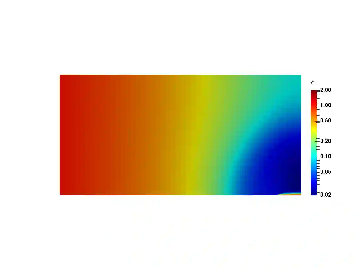翻译:电动电化学和电动电动装置等离子体的微小临界层面(小型Debye层)使得对电动物种运输进行精密的模型化分析、设计和优化成为了挑战。这些系统由Poisson-Nernst-Planck等方程式和Navier-Stokes等方程式代表,其中关键的利益是系统边界的当前。精确计算目前的通量具有挑战性,因为边界层(小型Debye层)的临界层面很小,需要在边界上进行精细的网格解。我们通过利用Drichlet-Neumann变异来解决这一挑战,弱化地将Poisson-Nernst-Planck等方程式的 Dirichlet条件强加给Drichlet。以弱力加固的Drichlet边界条件获得的结果与当传统边界条件和我们重新使用高度溶解的网格线时获得的结果十分一致。此外,计算目前的通量显示,使用较弱的强加条件和传统Drichlet边界条件比传统强加的D边界条件更快地混合。我们计算得难以精确解的3D问题的方法说明。这个方法大大降低了了模型化学系统的计算成本。